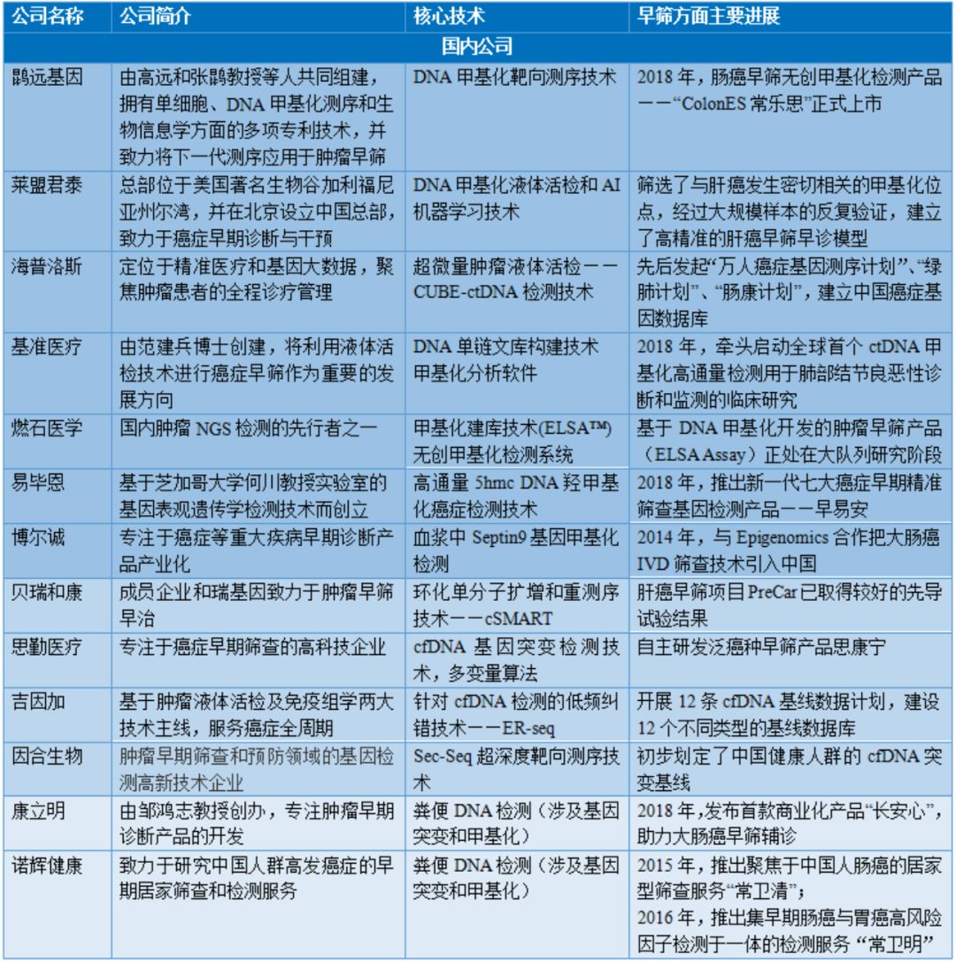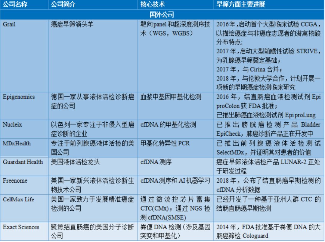 表2 国外布局液体活检肿瘤早筛公司