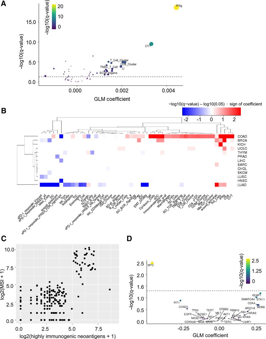 近日,北卡罗莱纳大学的研究人员设计并验证了一个新的机器学习算法模型,该模型可以预测特定肿瘤特异性抗原产生免疫反应的能力,有助于克服研制个性化癌症疫苗的重大障碍。 抗原是免疫系统区分正常细胞和癌细胞的标志,而肿瘤新生抗原(Neoantigen)的发现对癌症的诊断、过继性免疫治疗、肿瘤疫苗、个性化治疗起着极其重要的作用。随着高通量测序技术的发展以及国际大型肿瘤基因组研究项目(如COSMIC、TCGA)的开展,获得了大量肿瘤突变数据,为基于机器学习算法的抗原发现提供基础。 通过对癌症患者的基因组测序,往往可测出数万个突变,经过机器学习预测后可得到的新生抗原有数十个,但进入临床阶段后有免疫反应的寥寥无几甚至没有。如果算法能够预测出能产生免疫反应的新生抗原,就可以大大降低成本和缩短研究时间。 肿瘤疫苗制备流程图 当前的肿瘤新生抗原预测算法主要通过对表位/MHC亲和力预测选择潜在的抗原表位,这些算法最大的问题是都不能准确的预测抗原表位免疫原性,也就无法准确预测这些抗原能否触发人体免疫系统对抗癌症。 针对这个问题,研究人员设计并验证了一种新的机器学习算法,以预测特定肿瘤特异性抗原(tumor-specific antigen,TSA)产生免疫反应的能力。并发表在近日的《Cancer Immunology Research》上。 肿瘤抗原预测和抗原内在性质鉴定示意图。A,研究采用的各个肿瘤模型中MHC-I和MHC-II类新生抗原/mHA数量。B,新生抗原/mHA预测以及ELISpot验证流程。C,抗原性质鉴定,包括氨基酸序列以及:(I)绝对位置,(II) 相关位点,(III)突变位置 ,(IV)每个多肽的起始、中间和末端。 随后,研究人员将这个算法在两个小鼠肿瘤模型进行了验证,并证实该算法可以预测具有潜在治疗价值的抗原。 梯度推进模型(gradient boosting model, GBM)方法预测的肿瘤新生抗原/mHA免疫原性的验证。A,GBM模型的交叉验证方法示意图。B,最终的GBM在验证数据集中的表现,X轴表示实际的免疫原性评分,Y轴表示预测的免疫原性评分,圆圈大小表示抗原数量,红线为最佳拟合线。C和E为肿瘤疫苗的体内验证流程图,C为小鼠膀胱癌模型(BBN963),E为P815肥大细胞瘤小鼠模型。D和F为两种小鼠模型Kaplan–Meier生存曲线。 在小鼠模型中成功验证后,研究人员推测人类肿瘤新生抗原的免疫原性也有相似的规则。并通过TCGA数据库中结肠癌和肺腺癌相关数据集进行了验证,证明了该算法可发现肿瘤新生抗原与免疫原性的联系。 在TCGA人类数据库中预测的肿瘤新生抗原关联分析。A,TCGA泛癌数据集中HINs和IGS的数量关系,X轴为GLM系数,Y轴为-log10(q值)。B,每个TCGA数据集的HINs和IGS数量关系的GLM回归热图。C,TCGA结肠癌数据集的HINs(X轴)和MSI值(Y轴)的关系,D,IGS平均表达水平的GLM系数与-log10(q值)的火山图。 注:HINs(highly immunogenic neoantigens, 高免疫原性新生抗原),MSI (microsatellite instability, 微卫星不稳定性),IGS(Immune gene signatures,免疫活性基因表达谱) 随着肿瘤疫苗在肿瘤临床治疗上重要性的逐渐提升,该方法提高了预测抗原表位免疫原性的精确性,有助于更好的筛选肿瘤特异性抗原,缩短肿瘤疫苗临床应用的周期。 参考文献: Machine-Learning Prediction of Tumor Antigen Immunogenicity in the Selection of Therapeutic Epitopes. Cancer Immunology Research(2019). DOI: 10.1158/2326-6066.CIR-19-0155 |