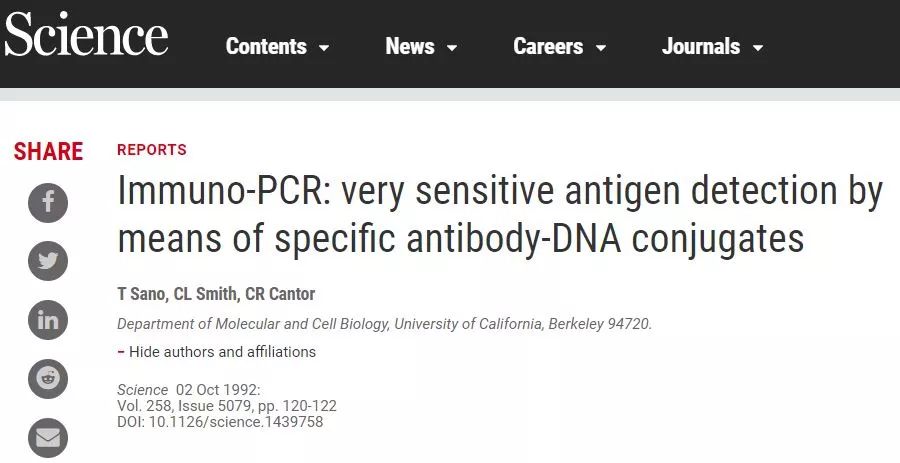 免疫PCR本质上综合了两种方法的优点,只要有适当的抗体试剂,ELISA就可以检测到任何蛋白质,但它可能不够灵敏,无法鉴定低丰度的蛋白质。虽然PCR提供指数信号放大,但它不能直接用于抗原检测。免疫PCR通过抗体-寡核苷酸缀合物,利用PCR的方法放大信号,使免疫检测拥有了超高的灵敏度。
