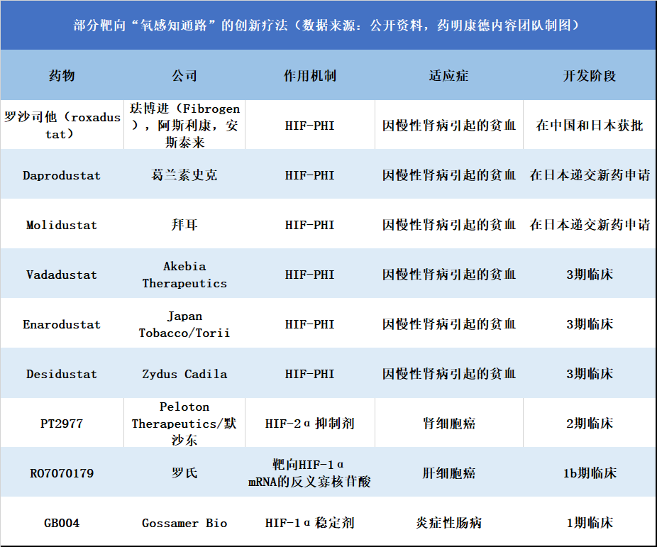 昨日,2019年诺贝尔生理学或医学奖揭晓获奖名单。William G. Kaelin教授、Peter J. Ratcliffe教授、以及Gregg L. Semenza教授因为对人类以及大多数动物的生存而言,至关重要的氧气感知通路的研究摘得殊荣。 ▲William G. Kaelin教授(左)、Peter J. Ratcliffe教授(中)、以及Gregg L. Semenza教授(右)(图片来源:参考资料[1]) 治疗贫血的创新疗法 ▲生物体感知氧气的通路示意图(图片来源:参考资料[2],Credit:Cassio Lynm) ▲部分HIF-PHI分子结构式(图片来源:Meodipt [Public domain]) 治疗癌症的创新疗法 结语 本文题图:Photo by Adam Baker, 'Nobel Prize Medal in Chemistry' CC BY 4.0 (https://www.flickr.com/photos/atbaker/8459286843), via Flickr 参考资料: [1] The Nobel Prize in Physiology or Medicine 2019, Retrieved October 7, 2019, from https://www.nobelprize.org/prizes/medicine/2019/summary/ [2] 2016 Albert Lasker Basic Medical Research Award: Oxygen sensing – an essential process for survival, Retrieved October 7, 2019, from http://www.laskerfoundation.org/awards/show/oxygen-sensing-essential-process-survival/ [3] Beck et al., (2018). Discovery of Molidustat (BAY 85-3934): A Small-Molecule Oral HIF-Prolyl Hydroxylase (HIF-PH) Inhibitor for the Treatment of Renal Anemia. ChemMedChem, DOI: 10.1002/cmdc.201700783 [4] Soni and Padwad, (2018). HIF-1 in cancer therapy: two decade long story of a transcription factor. Acta Oncologica, https://doi.org/10.1080/0284186X.2017.1301680 [5] Gossamer Bio. Retrieved October 7, 2019, from https://www.gossamerbio.com/pipeline/pipeline-overview/ [6] FibroGen, Inc. Corporate Presentation. Retrieved October 7, 2019, from https://fibrogen.gcs-web.com/static-files/c82c7b58-d8d5-4567-93b6-0e85ac6b2105 [7] Akebia Therapeutics. Retrieved October 7, 2019, from https://akebia.com/research-and-development/vadadustat.aspx [8] Yu et al., (2017). Development of Inhibitors Targeting Hypoxia-Inducible Factor 1 and 2 for Cancer Therapy. Yonsei Medical Journal, Doi: 10.3349/ymj.2017.58.3.489 [9] Xie et al., (2017). Activation of intestinal hypoxia-inducible factor 2α during obesity contributes to hepatic steatosis. Nature Medicine, https://doi.org/10.1038/nm.4412 [10] Merck to Acquire Peloton Therapeutics, Bolstering Oncology Pipeline. Retrieved October 7, 2019, from https://investors.merck.com/news/press-release-details/2019/Merck-to-Acquire-Peloton-Therapeutics-Bolstering-Oncology-Pipeline/default.aspx [11] GSK submits first regulatory application for daprodustat in Japan for patients with renal anaemia due to chronic kidney disease. Retrieved October 7, 2019, from https://www.gsk.com/en-gb/media/press-releases/gsk-submits-first-regulatory-application-for-daprodustat-in-japan-for-patients-with-renal-anaemia-due-to-chronic-kidney-disease/ [12] Wu et al., (2019). Evaluation of a locked nucleic acid form of antisense oligo targeting HIF-1α in advanced hepatocellular carcinoma. World J Clinical Oncology, doi: 10.5306/wjco.v10.i3.149 |