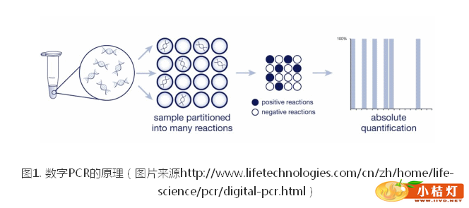 数字PCR(Digital PCR-dPCR)技术是一种新的核酸检测和定量方法,与传统定量PCR(qPCR)技术不同,数字PCR采用绝对定量的方式,不依赖于标准曲线和参照样本,直接检测目标序列的拷贝数。由于这种检测方式具有比传统qPCR更加出色的灵敏度和特异性、精确性,dPCR迅速得到广泛的应用,这项技术在极微量核酸样本检测、复杂背景下稀有突变检测和表达量微小差异鉴定方面变现出的优势已被普遍认可,而其在基因表达研究、microRNA研究、基因组拷贝数鉴定、癌症标志物稀有突变检测、致病微生物鉴定、转基因成分鉴定、NGS测序文库精确定量和结果验证等诸多方面具有的广阔应用前景已经受到越来越多的关注。 数字PCR采用的策略概括起来非常简单,就是“分而治之”(divide and conquer)[1],这种做法非常类似于计算机科学中的“分治算法”,将一个标准PCR反应分配到大量微小的反应器中,在每个反应器中包含或不包含一个或多个拷贝的目标分子( DNA模板) ,实现“单分子模板PCR扩增”,扩增结束后,通过阳性反应器的数目“数出”目标序列的拷贝数。在实际的数字PCR实验中,事实上是通过呈现两种信号类型的反应器比例和数目进行统计学分析,计算出原始样本中的模板拷贝数。