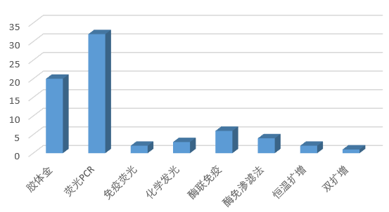 冠状病毒的注册试剂盒相对最少,且基本上都是通过PCR的方法进行病毒核酸检测。主要企业有华瑞安、达安等。