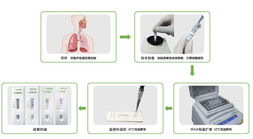 传统的层析试纸条使用方便,但检测灵敏度却不行。为了增加检测的灵敏度,可利用分子扩增技术进行信号放大,最后使用金标探针进行层析捕获。尽管这种方法增加了扩增这一步而延长了检测时间,但却大大增加了检测的灵敏度。使用恒温扩增的原因在于时间相对短,不需要温度循环,对仪器要求也更低。