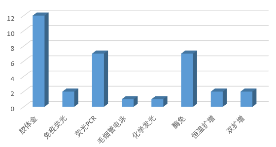 目前市场上针对呼吸道感染病原体的检测方法主要有荧光PCR法、免疫法和细菌培养法。荧光PCR法是在PCR扩增过程中,通过荧光信号,对PCR进程进行实时监测,定性或定量检测目的基因;免疫法是通过抗原抗体发生特异性结合来检测目的蛋白;细菌培养法是把病原体细菌在特定培养基上进行培养,再对产生的细菌菌落进行观察检测。