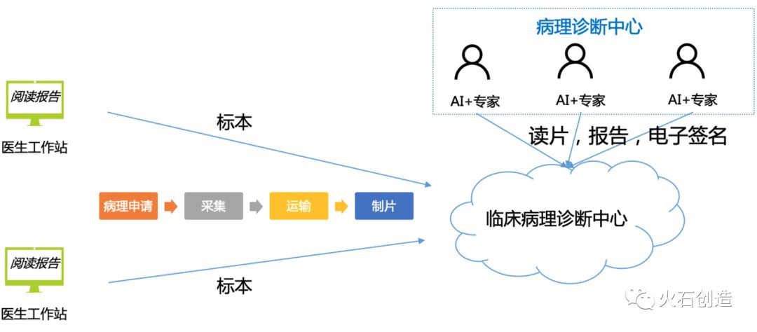 在美国,独立病理机构常见类型包括各类大学内设的病理实验室、独立病理实验室和医疗中心、医院独立出去的病理科及病理诊断中心3种。目前在国内,做第三方病理诊断的有独立的病理机构,也有一些做第三方检验的公司将病理诊断作为其业务之一。2012年全国首个区域病理诊断中心,宁波市临床病理诊断中心(上海市肿瘤医院宁波病理中心)成立。2018年1月12日,全国首家独立第三方病理诊断中心——上海衡道医学病理诊断中心在上海正式开业。综合来看,病理诊断中心为医疗行业供给侧结构改革提供了强大的助力,主要表现在以下六个方面:(1)盘活资源,促进区域内设备和人才资源的共享和复用;(2)促进大型公立医院和基层医院的协作,落实分级诊疗政策;(4)促进区域内医疗机构数据共享,让数据产生二次开发价值;(5)方便患者,提高诊断效率,减轻患者负担,提升就医体验;(6)发挥集约化、专业化优势,降低成本,提高诊断质量。将中心与所有医院和社区卫生服务中心联网,医生可以通过系统终端查阅病理报告,自主打印报告,实现全程无纸化,申请单电子化,标本条码化,物流统一配送,自动接收标本自动扫描,报告电子签名。