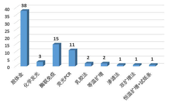 其中通过胶体金和酶免进行支原体的抗原抗体检测最多,分别有38和15个。化学发光有深圳市亚辉龙和北京贝尔生物注册有相应的检测试剂盒。荧光PCR作为核酸检测最常用的方法,国内共有11个试剂盒,具体公司如下所示。其中仅上海之江生物能够同时检测肺炎支原体和肺炎衣原体。上海仁度生物和珠海银科医学工程注册有等温扩增法肺炎支原体试剂盒。武汉中帜生物有双扩增法和RNA恒温扩增-金探针层析法两个试剂盒进行肺炎支原体检测。关于这两种方法的介绍可见之前的推送。
