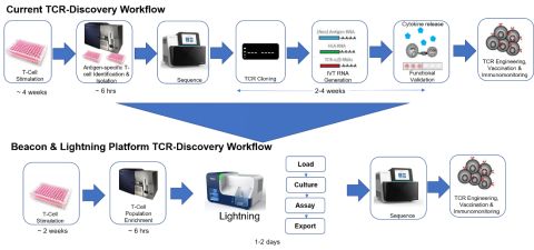 显而易见,BLI技术平台的运用,能够从技术层面明显缩短整个项目开发所需要的时间,同时平台所实现的整合、集约化和可实时监控的工作流程使得研发工作变得紧凑而高效,更加便于制药企业以及CRO或者研究单位的项目管理。 除了生物制药领域,在当前比较火热的肿瘤免疫治疗领域,BLI单细胞光流体技术也提供了一体化进行抗原特异性T细胞的单细胞分选以及在线实时分析T细胞增殖、表型、细胞因子及杀伤力等多参数综合分析免疫系统功能平台,为单个细胞水平的免疫学研究提供了一套最直接的全面及高效的研究方法。 图7 实时单个T细胞水平的活性检测实验到目的细胞/细胞群体导出 除了T细胞表型和功能信息的活性评估检测之外,T细胞表面受体(TCR)序列对T细胞相关研究来说也比较关键,TCR基因序列可以准确地描述了T细胞在包括恶性肿瘤、自身免疫性疾病和传染病等多种疾病中的动态,决定着人的免疫系统如何适应环境的变化,具有很大的科学价值。正常T细胞在没有抗原刺激的情况下,TCR基因的重排是随机的,而接受相应抗原刺激后,TCR特别是其可变区V区基因对抗原产生特异性识别,并使带有这类基因的T细胞得到优势扩增,而T细胞领域的研究者们往往最后更关注就是拿到这样的TCR的序列。BLI单细胞光流体技术可以助力TCR相关的免疫基因组学研究,帮助研究者将分析评估后的目的T细胞/单个T细胞克隆群体选择性的导出用于进行后续的下游实验如T细胞受体(TCR)测序等操作。 图8 BLI 技术平台上TCR Discovery的流程的优化 TCR 开发流程极大的简化并改进了现有复杂繁琐的方法,仅仅利用2天时间即可在线一体化的完成原来1-3个月时间里面完成的特异性T细胞高效分选(TCR筛选)及克隆和功能验证试验,帮助研究者们在最短的时间里面找到最佳的可有效结合靶抗原的T细胞抗原受体(TCR Candidates),最终直接关联下游测序流程帮助研究者们后直接获得特异性识别肿瘤抗原的TCR序列进行TCR药物开发或者用于疫苗研究等。 当然不仅仅是TCR开发,在其他T细胞修饰等技术的相关应用中都以其独特的单细胞水平的研究方式帮助研究者们去将T细胞及其受体的改造后的活性功能分析、培养、克隆等工作流程实时高效的开展完成,以数字细胞学的方式大大的加速了整个细胞生物学研究的进程。 图9 BLI单细胞技术快速评估基因编辑T细胞表型(Nature期刊) 展望 单细胞层面的研究已是生物技术大行业的大势所趋,为这样的趋势提供强有力的技术支持,无论对于行业还是对于企业自身,都是一件极有意义和前景的事情。小编相信,这些技术平台未来在基础研究的层面将会大有可为,在产业界的医药产品开发中也会发挥越来越重要的作用。 参考文献 1.High-throughput single-cell ChIP-seq identifies heterogeneity of chromatin states in breast cancer,Nature Genetics volume 51, pages1060–1066 (2019) 2. Single human B cell-derived monoclonal anti- Candida antibodies enhance phagocytosis and protect against disseminated candidiasis,Nature Communications volume 9, Article number: 5288 (2018) 3. A Microfluidic Platform for High-throughput Single-cell Isolation and Culture. Journal of Visualized Experiments, 2016(112). 4. Light-activated cell identification and sorting (LACIS) for selection of edited clones on a nanofluidic device, Nature Communications Biology, Article number: 41 (2018). |