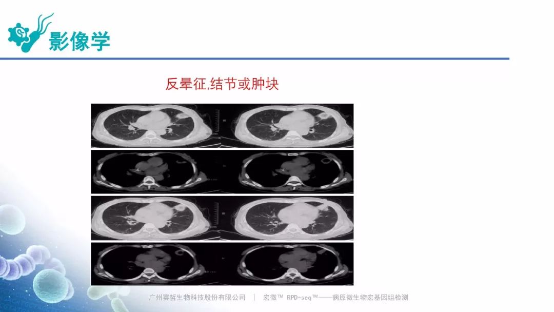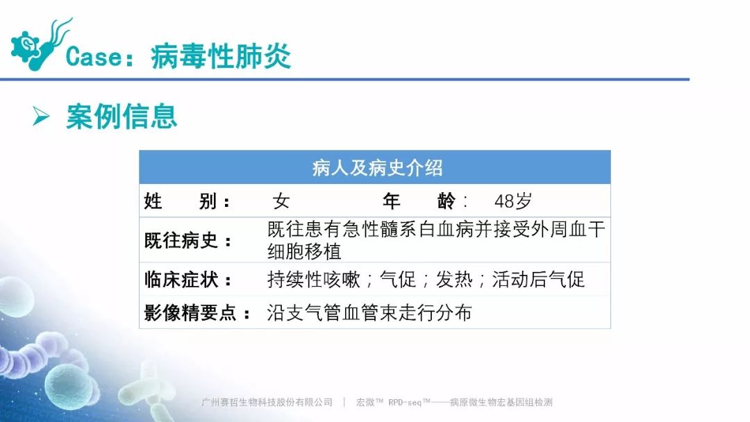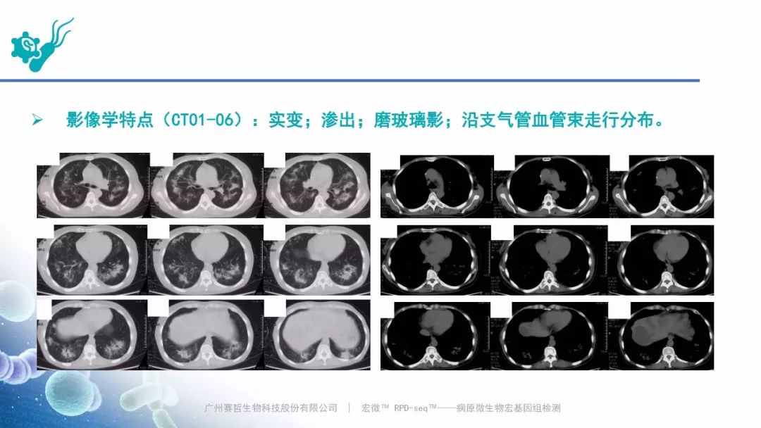 Case:病毒性肺炎,赛哲特异性检出 RNA病毒:人副流感病毒 3型(滑动图片) Case:肺曲霉菌病,赛哲特异性检出曲霉(滑动图片)