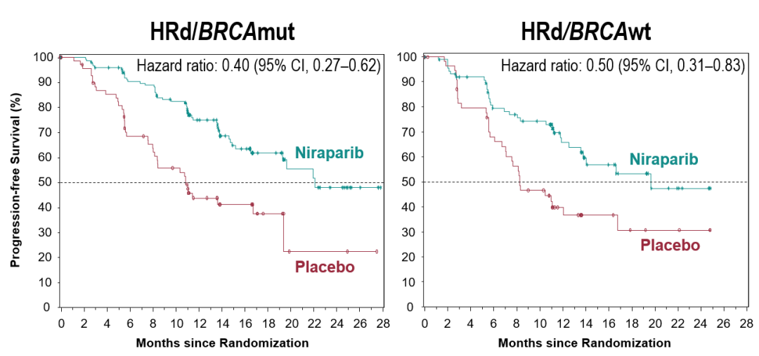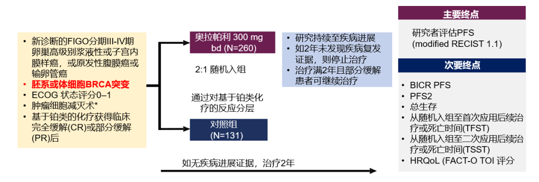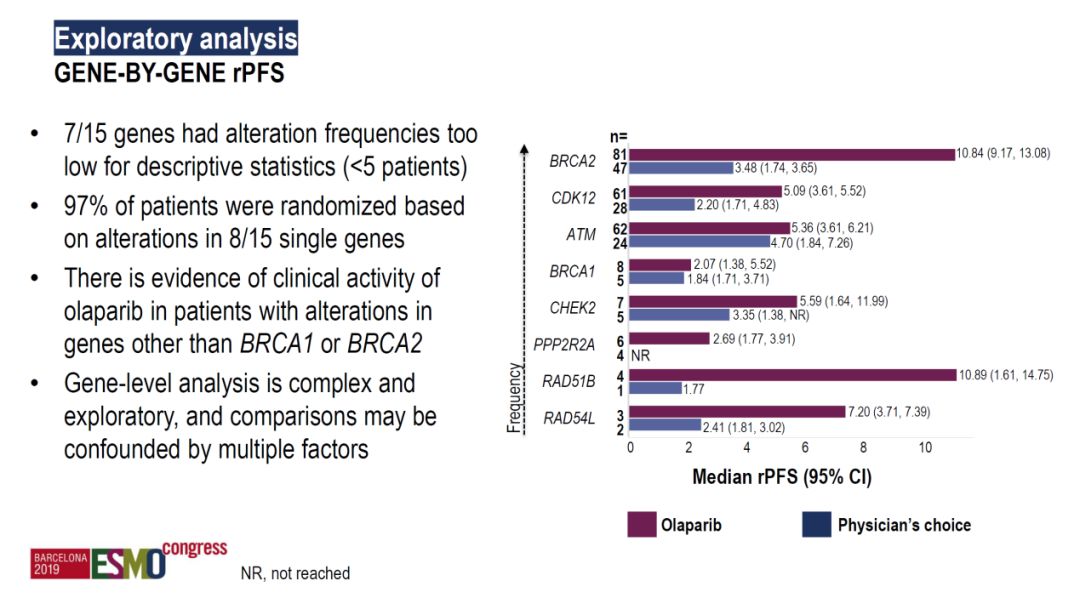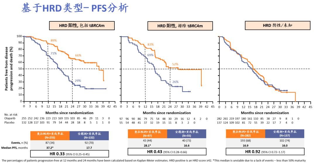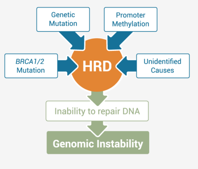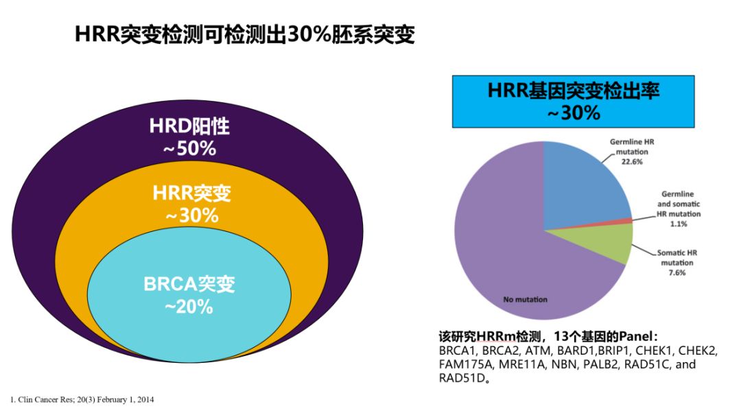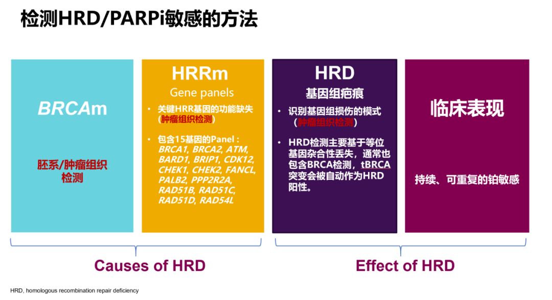 2019年ESMO发布的Ⅲ期临床试验PAOLA-1研究的数据不仅证实了PARP抑制剂(PARP inhibitor,PARPi)奥拉帕利联合贝伐珠单抗的方案可用于卵巢癌患者一线维持治疗,两个预先指定的亚组分析[分别基于BRCAm状态和同源重组缺陷(homologous recombination deficiency,HRD)状态]的阳性结果将一个稍许陌生的名词 “HRD”带入大家的关注范围。为此,我们将通过阐明PARPi的药物作用机理,看BRCA基因与HRD的联系。结合最新的临床数据分析HRD相关检测的具体应用和临床价值。 复旦大学附属肿瘤医院肿瘤妇科主任医师 教授 1. 从BRCA1/2基因说到PARPi的作用机理 PARP是修复DNA单链损伤的关键酶,当PARP抑制剂选择性抑制PARP酶介导的DNA单链损伤修复途径时,未修复的DNA单链损伤在DNA复制时将转化为DNA双链断裂(double-strand breaks,DSBs)。DSBs则通常依赖两个途径进行修复,1)同源重组(homologous recombination,HR)途径;2)非同源末端修复途径。相较于后者,HR途径由于使用的是姐妹染色体上对应的未损伤序列作为模板进行精准复制,从而是一个高保真的修复途径,DSBs可以高效准确地得到修复。位于17号染色体的BRCA1基因和13号染色体的BRCA2基因,它们编码的BRCA是HR途径中的关键蛋白之一,BRCA蛋白功能的缺失会导至HR途径无法正常运行,其中BRCA1/2突变则是引起BRCA蛋白功能缺失从而导至HR途径功能受损的常见原因。BRCA1/2突变的肿瘤细胞会启用非同源末端修复系统,这一途径是细胞面临紧急情况时采用的应急措施,使用非同源DNA迅速地将DSBs修复,从而阻止进一步的伤害。这种极端的方式,由于采用非同源DNA修复,导至大量的基因修复错误,损失无法得到精确修复,错误不断地积累,最终导至细胞死亡。PARPi可通过这种协同致死作用对BRCA基因缺陷的卵巢癌患者发挥高效的抗癌作用,我们将这样的作用机制称为“协同致死”。 PARPi在BRCA1/2突变患者中的疗效在多项研究中被证实。其中引起最大轰动的是SOLO1研究,这是第一项评价PARPi(奥拉帕利)用于携带BRCA1/2突变的晚期卵巢癌含铂化疗后一线维持治疗的随机、双盲、安慰剂对照的国际多中心的大型Ⅲ期临床研究,其中BRCA1/2突变作为研究入组的标准之一起到了精确筛选患者的作用。共计391例晚期卵巢癌、输卵管癌和原发性腹膜癌患者按照2∶1的比例分别接受奥拉帕利和安慰剂的治疗。接受治疗3年时奥拉帕利组中仍有60%的患者未发生疾病进展,安慰剂组中的比例为26.9%(HR=0.30,95% Cl 0.23~0.41)。中位随访41个月时,奥拉帕利组仍有超过一半的患者未复发,相关分析预测中位无进展生存期(PFS)相比安慰剂组延长36个月。 2.从BRCA基因到HRD的跨越 早在1990s就发现BRCA与遗传性乳腺癌和卵巢癌的家族发病风险相关,之后的10多年的研究更是确立了BRCA在细胞分化过程中对于维护染色体的结构和稳定性的重要作用。起初我们用HRD来描述具有BRCA1/2基因突变的患者表现出的无法通过精确的HR通路来修复DSBs的状态。然而随着研究的深入我们发现HR通路中其他基因的突变、表观遗传学的改变乃至一些目前无法确认的机理同样会导至HRD,存在HRD的细胞将无法正常修复DNA的损伤,最终表现为基因组结构和数量的不稳定。 2019年在ESMO大会上公布的Ⅲ期临床试验PAOLA-1的研究结果显示,一线选用贝伐珠单抗进行维持治疗加用奥拉帕利将显著改善晚期卵巢癌患者(ITT人群)的PFS(HR 0.59,95% CI 0.49~0.72)。预先指定的亚组分析显示在组织BRCA突变(HR 0.31,95% CI 0.20~0.47)和HRD阳性(HR 0.33,95% CI 0.25~0.45)两个亚组中较之于贝伐珠单抗单药维持治疗,贝伐珠单抗联合奥拉帕利组的人群PFS获益更明显。此外,人群数据的分析显示在806名受试者中HRD阳性(PALOLA-1使用的是 Myriad公司的基因瘢痕检测试剂盒My Choice HRD test,HRD积分大于42认为是HRD阳性)的患者有387例(占总人群48%),其中组织BRCA1/2为突变(tBRCAm)的患者有235例(占总人群29%),HRD阳性的非组织BRCA1/2突变(non-tBRCAm)的患者有152例(占总人群19%)。即通过检测HRD导至的基因不稳定性可有效预测额外约20%的患者,从PARPi中显著获益的患者可从20%的BRCAm人群到50%的HRD人群。 同期发布的另一项Ⅲ期随机、双盲、安慰剂对照临床试验PRIMA的研究结果同样纳入了针对HRD亚组的分析。通过Myraid公司的My Choice HRD test判断患者存在HRD的卵巢癌人群中,携带BRCA1/2突变的患者接受尼拉帕利的中位PFS为22.1个月,使用安慰剂的人群中位PFS为10.9个月(HR 0.40,95% CI 0.27~0.62)。BRCA1/2未发生突变的HRD患者接受尼拉帕利治疗的PFS为19.6个月,安慰剂组为8.2个月(HR 0.50,95% CI 0.31~0.83)。与PAOLA-1人群分析结果基本一致,PRIMA研究最终入组的733例患者中共计373例(50.9%)患者存在HRD。 3. 评估同源重组修复缺陷的生物标记物 BRCA1/2基因的突变以及患者对铂类药物的敏感性可成功预测PARPi治疗敏感的人群。此外,还可分析HR通路中相关基因的突变实现预测PARPi疗效的目的。2019年ASCO上发布的Ⅱ期临床试验TOPARP-B的研究数据提示HR通路中除BRCA1/2以外,几个关键基因如ATM、CDK12和PALB2同样可不同程度预测转移性去势抵抗型前列腺癌(mCRPC)患者对PARPi的综合疗效。2019年ESMO上公布的Ⅲ期临床试验PROfound研究数据显示携带BRCA1/2或ATM突变的mCRPC患者,PARPi奥拉帕利与恩杂鲁胺或阿比特龙相比,主要研究终点影像学无进展生存期显著改善(HR 0.34,95% CI 0.25~0.47)。同时,各类型基因突变的分析中,显示BRCA1/2、ATM、CHK12、CHEK2、RAD51B和RAD54L等基因都可能与奥拉帕利延长PFS的疗效相