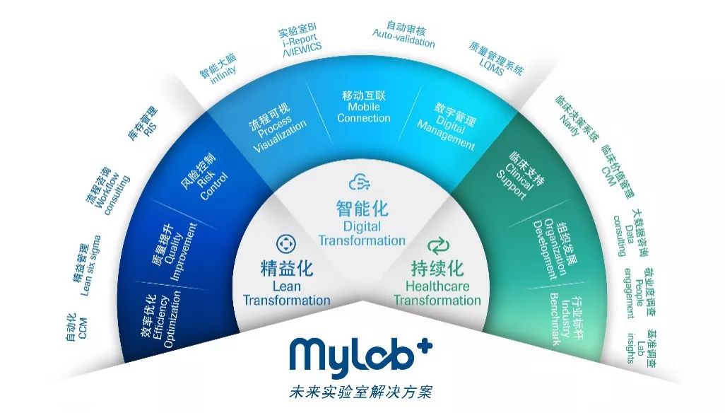 更好地满足实验室需求,解决实验室“效率优化”、“数字管理”、“临床支持”等九大挑战,罗氏诊断推出全新MyLab+未来实验室解决方案,围绕“精益化”、“智能化”、“持续化”发展打造定制化的智慧方案:基于实验室自动化基础,打造精益实验室,优化效率、提升质量、控制风险;基于实验室精益化,联合智能软件,打造流程可视、移动互联、数字管理的智能实验室;同时,助力实验室培养人才不断发展,为临床的诊断、决策、治疗提供坚实的支持。
