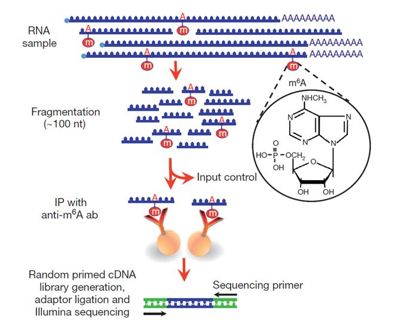 一、什么是甲基化? 甲基化是指碱基上引入甲基的过程,DNA,RNA均存在甲基化现象。 DNA甲基化是指DNA序列上特定的碱基在DNA甲基转移酶的催化作用下,使得碱基获得甲基的过程。这种DNA甲基化修饰可以发生在胞嘧啶、腺嘌呤及鸟嘌呤。一般研究中所涉及的DNA甲基化主要是指CpG岛上胞嘧啶的甲基化过程,其产物为5-甲基胞嘧啶(5mC)。CpG岛(CpG island)是指基因组某些区域CpG序列的密度比平均密度高10~20倍,CpG岛的功能是通过甲基化与去甲基化调控下游基因的表达。如果CpG岛发生高甲基化,基因表达就会被抑制。肿瘤中普遍存在DNA甲基化状态变化,一般是总体甲基化水平降低与局部甲基化水平升高,指示肿瘤相关蛋白的失控表达。因此针对相关DNA序列甲基化检测可以帮助肿瘤的早期筛查。 图1 DNA甲基化 RNA甲基化成因则更为复杂,m6A(N6-methyladenosine,6-甲基腺嘌呤)是真核生物mRNA内部序列中最常见的一种甲基化修饰,同时可以功能性的调节真核生物的转录组从而影响mRNA的剪接、出核、定位、翻译和稳定性。m6A-RNA出现在多种重要的细胞生命过程中,意味着mRNA甲基化参与了多种生物学过程,如干细胞分化、生物节律等,同时也参与了多种疾病的发生,包括肿瘤、肥胖和不育等。 图2 RNA甲基化