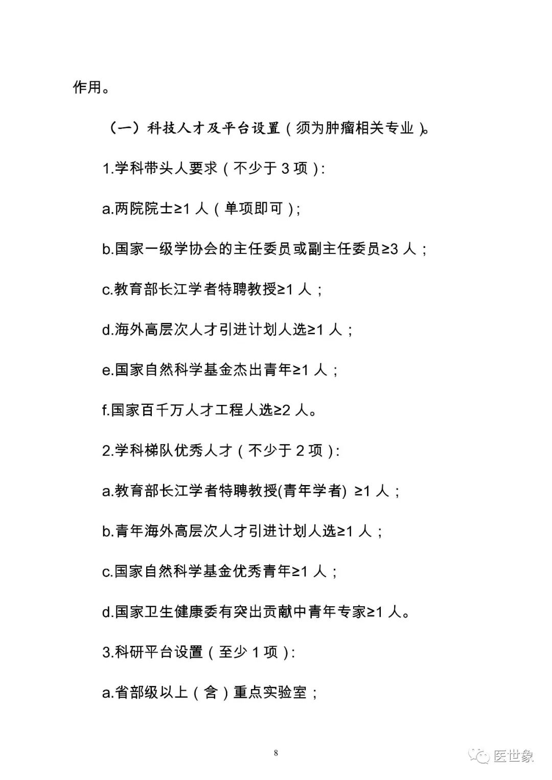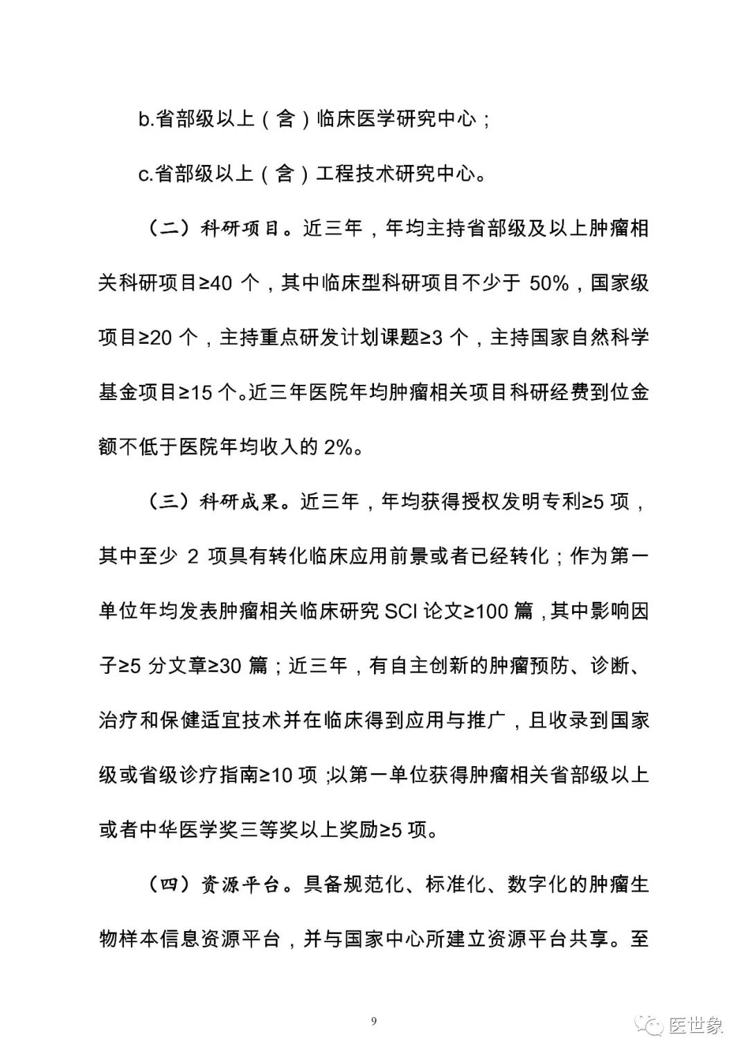 国家卫生健康委办公厅关于印发国家癌症区域医疗中心设置标准的通知 国卫办医函〔2019〕697号 各省、自治区、直辖市及新疆生产建设兵团卫生健康委: 为贯彻落实国务院办公厅《关于推进分级诊疗制度建设的指导意见》(国办发〔2015〕70号),根据《“十三五”国家医学中心及国家区域医疗中心设置规划》(国卫医发〔2017〕3号)要求,进一步完善癌症医疗服务体系顶层设计,优化癌症医疗资源区域布局,推动提升区域癌症医疗服务保障能力,助力实现区域分开,我委组织制定了《国家癌症区域医疗中心设置标准》(可从国家卫生健康委网站下载)。现印发给你们,请认真贯彻执行。 附件:国家癌症区域医疗中心设置标准 |