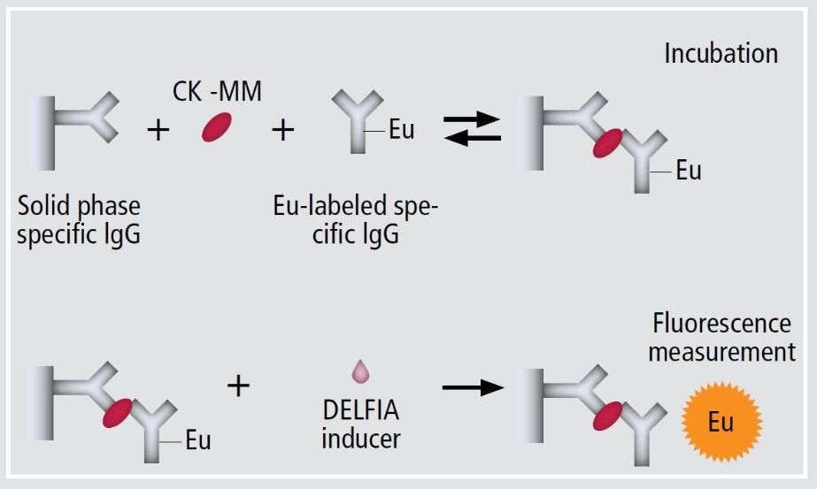 肌酸激酶(CK)是存在于肌肉细胞中的一种酶,在肌肉受损时则会流入到血液中。CK有几种不同的亚型,其中CK-MM亚型主要存在于骨骼肌细胞中,影响骨骼肌的损伤。DMD患者CK-MM酶的水平通常很高,因此CK酶水平的测量被用于DMD患者诊断的标准临床化学测试。GSP肌酸激酶试剂盒则是通过测量CK-MM酶的水平来鉴定新生儿是否携带致病基因。该试剂盒适用于PerkinElmer公司的GSP自动化生化分析仪器。