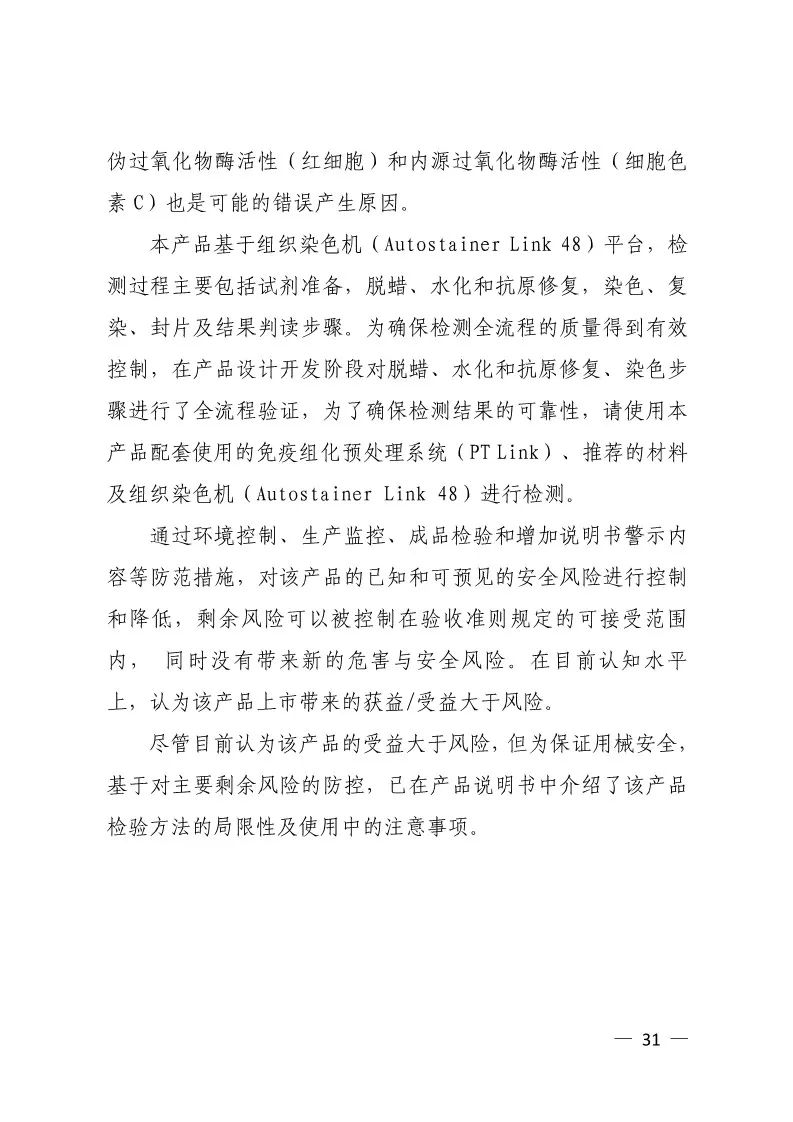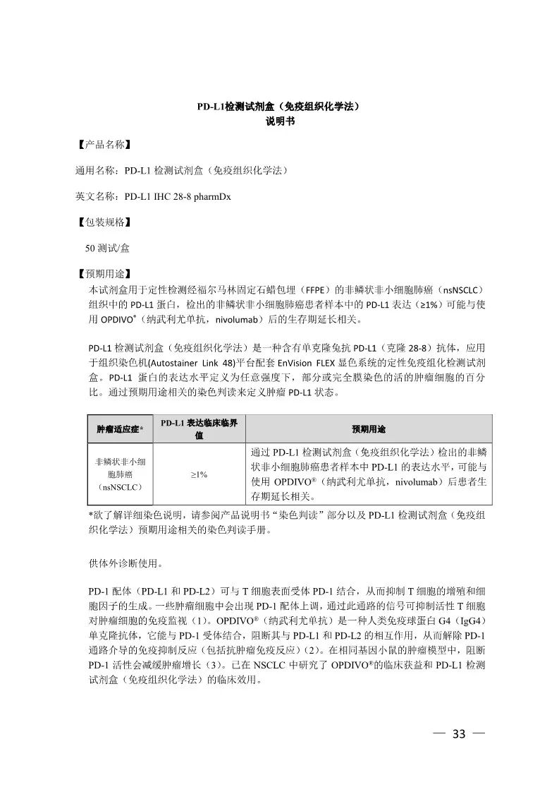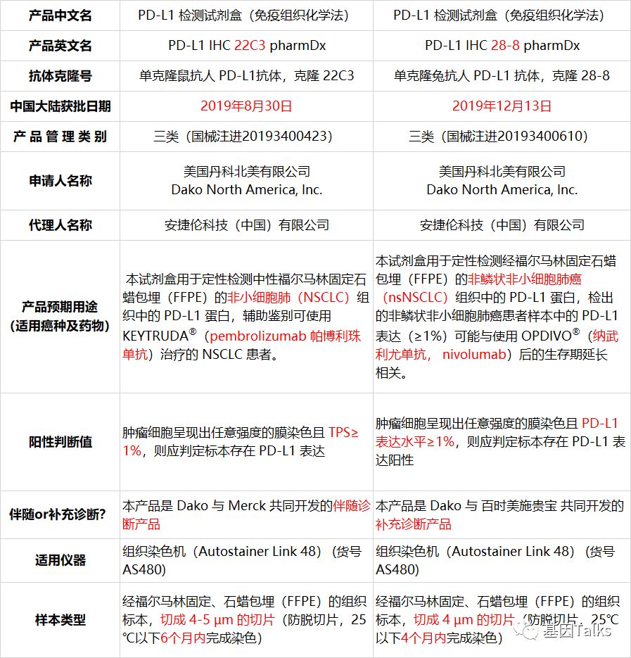 2019年8月30日,国家药品监督管理局(NMPA)批准美国丹科北美有限公司(Dako North America, Inc.)的“PD-L1检测试剂盒(免疫组织化学法)”(克隆号:22C3)上市(代理人:安捷伦科技(中国)有限公司),可辅助鉴别可使用帕博利珠单抗(pembrolizumab)治疗的 非小细胞肺癌(NSCLC )患者。这是中国大陆获批的首个PD-L1检测试剂盒。(中国首个PD-L1检测试剂盒注册技术审评报告和产品说明书) 2019年12月13日,国家药品监督管理局(NMPA)批准美国丹科北美有限公司(Dako North America, Inc.)的“PD-L1检测试剂盒(免疫组织化学法)”(克隆号:28-8)上市(代理人:安捷伦科技(中国)有限公司),可辅助鉴别使用纳武利尤单抗(nivolumab) 治疗的非鳞状非小细胞肺癌(nsNSCLC)患者 。这是继 Dako 22C3 PD-L1检测试剂盒之后,中国大陆获批的第二个PD-L1检测试剂盒。 ▲ CM-057:PD-L1表达量<1%的非鳞状NSCLC患者总生存期 针对目前已获批的两个PD-L1检测试剂盒,小编做了个简单的对比,仅供学习参考: ▲ NMPA批准的两个PD-L1检测试剂盒简单对比 Dako 22-8试剂盒详细的注册技术审评报告和产品说明书: 参考资料: 1.http://www.nmpa.gov.cn/WS04/CL2470/372101.html 2.PD-L1 检测试剂盒(免疫组织化学法)体外诊断试剂产品注册技术审评报告 |