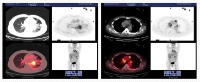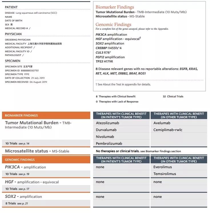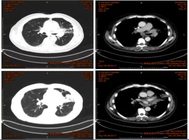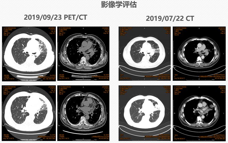 10余年来,晚期NSCLC靶向及免疫治疗发展迅速。相比于肺腺癌,肺鳞癌患者常见驱动基因突变发生率低,使用大Panel NGS检测进行更全面的基因图谱探索,有助于发现潜在的用药靶点和治疗机会,助力个体化精准治疗。同时,大Panel NGS检测还可以提供TMB以及其他免疫治疗正负相关基因,指导免疫治疗。以下分享一例来自上海交通大学医学院附属瑞金医院高蓓莉教授团队的局部晚期肺鳞癌,接受大Panel NGS检测后,接受免疫治疗联合化疗的病例,并邀请东部战区总医院宋勇教授对该病例进行点评。 东部战区总医院呼吸与危重症医学科主任 上海交通大学医学院附属瑞金医院呼吸内科 1. 基本情况:患者王某,男性,70岁。因“反复咳嗽咳痰3年余,加重1年,间断痰血10天”入院;2016年3月曾因“重症肺炎”于ICU诊治,当时肺功能及胸部CT影像学诊断COPD,并长期LABA吸入治疗;2019年6月开始,出现痰中带血,每日约20口,总量约5ml,后逐渐自行缓解,近20天再无痰血症状。 2. 既往史:高血压15年,糖尿病20年;个人史:吸烟45年,20支/天,未戒; 3. 入院诊断:咯血(待查);COPD(稳定期,B组);高血压(III级,极高危);2型糖尿病。 4. 肿瘤标志物检查:CEA 18.48↑ng/mL,NSE 19.06↑ng/mL,cyfra-211 8.59↑ng/mL,SCC2.90↑ng/mL。 5. 胸部CT检查示:左肺门区可见团块状软组织密度影,截面大小约为3.7cm*2.4cm。 图1. 胸部CT检查 6. PET/CT检查示:左肺门代谢增高团块影,考虑恶性病变,下叶局部胸膜增厚,伴代谢增高,转移性病变可能,双肺门代谢增高,考虑转移性病变;右锁骨上、下,纵隔多发淋巴结肿大伴代谢增高,考虑转移性病变。 图2. PET/CT检查 7. 纤支镜左肺下叶新生物活检病理:鳞状上皮重度异型增生;免疫组化示:鳞状上皮原位癌,异型细胞AE1/AE3(+),P40(+),P63(+),CK5/6(+),Ki67(热点区约60%+),ALK(D5F3)(-),SYN(-),CgA(-),CD56(-),TTF-1(-),CK7(-)。PD-L1表达:组织1中PD-L1(22C3)TPS<1%;组织2中PD-L1(22C3)TPS约10%。 8. 行基因检测(小Panel NGS)均为野生型(EGFR、ALK、ROS1、RET、BRAF、KRAS、HER2、PIK3CA、MET);c-MET扩增阴性。再次行FoundationOne CDx全面基因组测序:TMB 10 mut /Mb,PIK3CA扩增、HGF扩增、Sox2扩增。 9. 诊断:支气管或肺恶性肿瘤(左肺鳞癌),cT2N3M0,IIIB期,TMB 10mut/Mb,PIK3CA扩增,PS评分1分。10. 治疗:给予白蛋白紫杉醇+卡铂+帕博利珠单抗治疗2个周期后,行同步放疗。 11. 复查评估:9月23日复查PET/CT显示左肺门高代谢团块,考虑恶性病变,与2019年7月24日全身PET/CT比较,大小相仿,代谢增高;双侧胸腔见少量积液;双侧背部胸膜增厚;纵膈、双肺门及右锁骨上高代谢肿大淋巴结,与前片比较,大小相仿,代谢增高;左肺上叶结节,边缘毛刺,代谢增高;右肺上叶磨玻璃结节,代谢不高;双肺肺气肿,双肺下叶及右肺中叶间质性改变,评估结果为SD。 图3. 2019年9月23日PET/CT 12. 治疗方案:继续白蛋白紫杉醇+卡铂+帕博利珠单抗治疗;经胸外科/放疗科MDT讨论:行同步放化疗,治疗结束评估是否可行手术治疗;2019年9月27日行第一次放疗定位。最新复查评估时间为11月13日,评估结果为SD。 图4. 2019年10月1日胸部CT 老年男性,重度吸烟者,PS评分1分。合并COPD,且症状控制不佳,以“近1年咳嗽、咳痰逐渐加重,间断咯血10余天”为主诉入院,胸部CT发现左肺门肿物,PET/CT检查发现左肺门肿物伴纵隔多发淋巴结肿大。穿刺活检为鳞癌,小Panel基因检查均为野生型,FoundationOne CDx全面基因组测序:TMB 10 mut/Mb,PIK3CA扩增。诊断为:支气管或肺恶性肿瘤(左肺鳞癌),cT2N3M0, IIIB期,TMB 10 mut/Mb,PIK3CA扩增。给予白蛋白紫杉醇+卡铂+帕博利珠单抗治疗,行同步放疗。复查PET/CT评估结果为SD。继续白蛋白紫杉醇+卡铂+帕博利珠单抗治疗,行同步放化疗,治疗结束评估是否可行手术治疗。 专家点评 这是一例老年男性,重度吸烟患者,临床诊断为左肺鳞癌,cT2N3M0, IIIB期。虽然患者属于局部晚期,但应该作为晚期患者来处理。对于晚期鳞癌患者,过去几十年,我们一直没有取得突破性进展,直到免疫治疗问世。目前,肺鳞癌的免疫治疗,可谓在探索中前行。对于这例患者的治疗,存在以下思考: 第一,进行大Panel NGS检测,对于肺鳞癌患者的治疗具有重要的价值和意义。相比于肺腺癌,肺鳞癌患者常见驱动基因突变发生率低,使用更大Panel NGS检测,有助于发现其他潜在的用药靶点和治疗机会。同时,大Panel检测还可以提供TMB以及其他正负相关基因,可以用于免疫治疗疗效的预测和参考。正如该例患者,初始行小Panel基因检查均为野生型,再次行FoundationOne CDx全面基因组测序后发现TMB 10 mut/Mb,PIK3CA扩增,提示可考虑接受免疫治疗。此外,其治疗方案的制定亦结合了当前的循证医学证据。在CheckMate 568研究中,采用纳武利尤单抗联合小剂量伊匹木单抗用于治疗晚期或转移性的NSCLC一线治疗。结果显示,根据TMB进行分组,TMB≥10mut/Mb的患者客观缓解率(ORR)为44%,对比TMB<10mut/Mb的患者,ORR仅为12%,两组的PFS分别为7.1个月vs2.6个月。且无论患者的PD-L1表达水平,TMB高组的疗效均优于TMB低组。KEYNOTE 407研究在评估了帕博利珠单抗联合化疗一线用于Ⅳ期肺鳞癌患者,相比较单纯化疗,显著改善总生存(OS),HR=0.64,不论PD-L1表达水平。因此,基于当前循证医学证据与检测结果等多角度的参考,给予免疫治疗。 第二,大Panel NGS检测对于晚期NSCLC患者具有重要的价值和意义。CSCO新鲜出炉的中国NGS临床实践调研报告显示,不考虑经济因素,46.5%医生会在一线推荐使用大Panel NGS。随着NGS检测技术不断完善,价格不断下调,尤其是未来NMPA(国