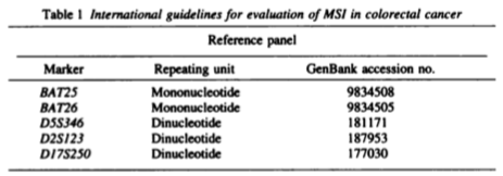 微卫星不稳定(MSI)相信大家都不陌生,它在结直肠癌、子宫内膜癌、胃癌等多个实体瘤中都是非常重要的分子生物标志物。MSI具有多个临床价值,包括: (1)II期MSI-H结直肠癌患者的预后较好; (2)II期MSI-H结直肠患者无法从5-氟尿嘧啶辅助化疗中获益; (3)MSI检测能够辅助诊断林奇综合征; (4)MSI状态可预测免疫治疗疗效。 目前市面上已经有多个MSI商用试剂盒出现,各种Panel让人眼花缭乱,位点选择也是参差不齐。人类基因组中多如牛毛的微卫星位点,到底应该选择哪些微卫星进行检测才是更靠谱的?位点的选择是否已经有标准可供参考呢?我们今天就来一探究竟。 Chapter One 诞生:1993年微卫星不稳定正式被发现 微卫星(Microsatellite,MS)是指人类基因组中的短串联重复序列(Short tandem repeat,STR),包括单核苷酸的重复、双核苷酸的重复,甚至更多核苷酸的重复。 微卫星不稳定(Microsatellite instability,MSI)是指相对于正常组织,肿瘤组织的微卫星由于重复单元的插入或缺失而造成微卫星任意长度的改变。 MSI的发现要追溯至1993年,Aaltonen et al.在《Science》上报道该团队发现遗传性非息肉病(Hereditary non-polyposis colorectal cancer,HNPCC)中MSI的发生率高达86%,而散发性结直肠癌MSI的发生率为16%。同一期的该期刊中,Thibodeau et al.也发现28%结直肠癌患者的肿瘤中发生了MSI的现象,同时发现MSI多发于近端结肠且与患者生存期延长呈显著相关。这些发现开启了肿瘤生物学和癌症易感性患者临床管理的新篇章。 MSI是错配修复系统(Mismatch repair,MMR)蛋白功能异常所导至的。在微卫星区域中,DNA复制时聚合酶在这些高度重复序列上容易滑脱,导至DNA合成出现错误。正常细胞中MMR系统可以识别并修复这些错误,而肿瘤细胞中MMR系统功能出现异常,无法识别和修复DNA在复制过程中产生的错误,因此DNA中的错误加速累积进而导至MSI的现象(图 1)。同时,研究中发现MSI的现象不仅仅存在于结直肠癌中,而是广泛的存在于多种肿瘤中,如子宫内膜癌、胃癌等。 图 1 目前检测MSI的金标准是PCR+毛细管电泳法,通常是用PCR方法同时对待测的肿瘤组织和正常组织的微卫星位点进行扩增,再通过毛细管电泳对扩增产物进行DNA片段分析。比较肿瘤组织和正常组织的基因图谱,如果肿瘤组织的五指峰相较于正常组织的五指峰发生了位移,则该微卫星位点不稳定。 Chapter Two 一统天下:NCI首次统一MSI检测位点“2B3D” Panel 20世纪90年代初,随着MSI的发现,陆陆续续相关的研究如雨后春笋般涌现出来,备受业界关注。因此,1997年美国国家肿瘤研究所(National Cancer Institute,NCI)对MSI检测位点的选择和诊断标准进行了规范和统一。 1997年NCI 举办的MSI研讨会上推荐的是一个简称为“2B3D”的NCI Panel,它包括5个微卫星位点,由2个单核苷酸位点(BAT-25和BAT-26)和3个双核苷酸位点(D2S123、D5S346和D17S250)组成。同时,专家组也制定了该Panel的诊断标准:若这5个微卫星位点中有2个或2个以上的微卫星不稳定,则判定为MSI-high(MSI-H),若有1个微卫星不稳定,则判定为MSI-low(MSI-L),若5个微卫星位点均稳定,则为微卫星稳定(Microsatellite stable,MSS)(图 2)。 图 2 直至今日,这个“2B3D”的NCI Panel在全球范围内都是最权威的检测标准。《中国临床肿瘤学会(CSCO)结直肠癌诊疗指南 2019版》、《结直肠癌分子标志物专家共识》(2018)、《遗传性结直肠癌临床诊治和家系管理中国专家共识》(2018)及《ESMO共识:肿瘤免疫治疗中的微卫星不稳定检测建议及其与PD-1/PD-L1表达和肿瘤突变负荷的关系》(2019)等多个国内外指南和共识均明确推荐用“2B3D” NCI Panel进行MSI检测。 Chapter Three 神秘援军:2002年NCI补充推荐Pentaplex Panel 在2002年,NCI举办的第二次HNPCC研讨会上对MSI的检测进行了修订和补充,除了可以选择”2B3D”NCI Panel之外,当时还推荐了另一个由5个单核苷酸微卫星位点构成的Pentaplex Panel,包括BAT-25、BAT-26、NR-21、NR-22、NR-24。有研究提示由于”2B3D“NCI Panel中含有3个双核苷酸的位点,导至其敏感性低于5个单核苷酸位点的Pentaplex Panel。