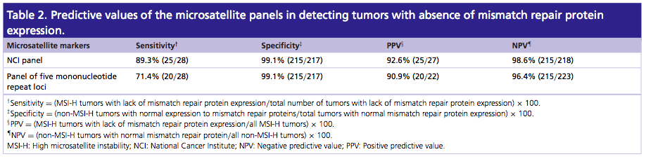 图 5 综上所述,检测位点的正确姿势就是参考国内外的指南和共识中推荐的“2B3D” NCI Panel和Pentaplex Panel,且有研究提示“2B3D”NCI Panel在中国人群中敏感性更高,可能更适合中国人群。 参考文献: 1.Boland, C.R., et al., A National Cancer Institute Workshop on Microsatellite Instability for Cancer Detection and Familial Predisposition: Development of International Criteria for the Determination of Microsatellite Instability in Colorectal Cancer. Cancer research, 1997. 58: p. 5248-5257. 2.Le, D.T., et al., PD-1 2.Blockade in Tumors with Mismatch-Repair Deficiency. N Engl J Med, 2015. 372(26): p. 2509-20. 3.3.Le, D.T., et al., Mismatch repair deficiency predicts response of solid tumors to PD-1 blockade. Science, 2017. 357(6349): p. 409-413. 4.Umar, A., et al., Revised Bethesda Guidelines for hereditary nonpolyposis colorectal cancer (Lynch syndrome) and microsatellite instability. J Natl Cancer Inst, 2004. 96(4): p. 261-8. 5.Zheng, J., et al., The clinicopathological features and prognosis of tumor MSI in East Asian colorectal cancer patients using NCI panel. Future Oncol, 2018. 14(14): p. 1355-1364. 6.Bai, W., et al., Screening of MSI detection loci and their heterogeneity in East Asian colorectal cancer patients. Cancer Med, 2019. 8(5): p. 2157-2166. 7.Overman, M.J., et al., Nivolumab in patients with metastatic DNA mismatch repair-deficient or microsatellite instability-high colorectal cancer (CheckMate 142): an open-label, multicentre, phase 2 study. The Lancet Oncology, 2017. 18(9): p. 1182-1191. 8.8.Fuchs, C.S., et al., Safety and Efficacy of Pembrolizumab Monotherapy in Patients With Previously Treated Advanced Gastric and Gastroesophageal Junction Cancer: Phase 2 Clinical KEYNOTE-059 Trial. JAMA Oncol, 2018. 4(5): p. e180013. 9.Vilar, E. and S.B. Gruber, Microsatellite instability in colorectal cancer-the stable evidence. Nat Rev Clin Oncol, 2010. 7(3): p. 153-62. |