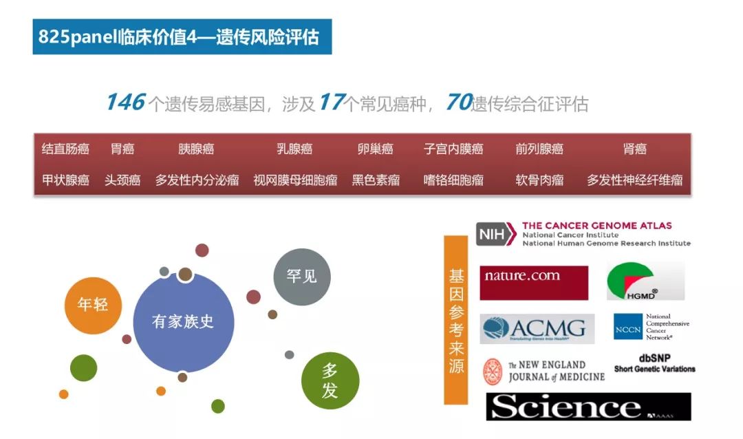实体瘤825基因检测 实体瘤825基因检测产品基于高通量、高灵敏度的NGS平台和“杂交捕获”技术,一次性检测825个癌症相关基因,涵盖了更新版本的WHO、NCCN、ESMO等权威指南及专家共识推荐检测基因,并结合泛生子基因上万例中国肿瘤患者的基因突变区域和遗传突变位点信息开发设计,多平台的联合应用可提供多维度的免疫治疗相关生物标志物检测(TMB、MSI、PDL-1、免疫疗效相关基因变异),从而更精准的指导肿瘤患者的个体化诊疗,亦为科研人员提供更加全面的参考信息。