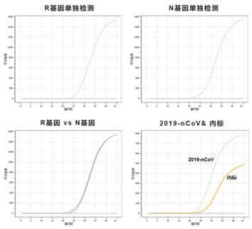 为了有效支持一线抗击疫情,我们连续加班,选取WHO推荐的2019-nCoV病毒保守的R基因和N基因,同时自己设计了2019-nCoV特异性引物进行检测验证,Globin基因作为内标。结果显示我们的试剂Hifair® V One Step RT-PCR Probe Kit对这三个位点灵敏度极高,而且内标有效地监控了实验和样本的有效性,为临床结果的准确提供强有力支撑。