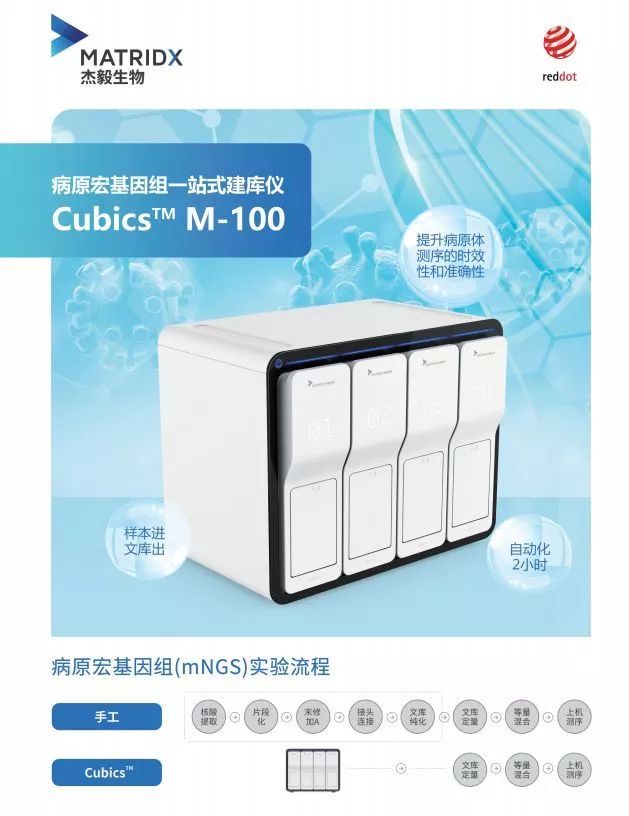高通量测序的实验流程耗时长,操作繁琐,尤其是建库环节步骤很多,需要多次转管和移液操作,为及时获取新型冠状病毒的全基因组序列造成了诸多困难。经过3年多的研发,杰毅生物已成功研制出了中国第一台高通量全自动样本处理设备Cubics™,并建有涵盖超过16000病原微生物样本大数据库及生物信息分析系统,不仅可以快速检出新型冠状病毒,同时也可以检测出其他病原微生物,对冠状病毒的或有变异进行监控,有助于临床精准诊断。