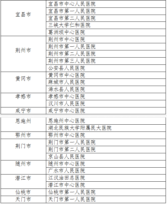为加快全省新型冠状病毒感染的肺炎患者诊断工作,根据《国家卫生健康委办公厅关于医疗机构开展新型冠状病毒核酸检测有关要求的通知》要求,结合我省实际情况,确定了一批可开展新型冠状病毒核酸检测的机构,现将相关信息公示如下。1. 湖北省疾控中心 2. 武汉市疾控中心 3. 黄石市疾控中心 4. 十堰市疾控中心 5. 襄阳市疾控中心 6. 宜昌市疾控中心 7. 鄂州市疾控中心 8. 黄冈市疾控中心 9. 荆门市疾控中心 10. 咸宁市疾控中心 11. 荆州市疾控中心 12. 孝感市疾控中心 13. 天门市疾控中心 14. 随州市疾控中心 15. 潜江市疾控中心 16. 仙桃市疾控中心 17. 恩施州疾控中心 18. 神农架疾控中心