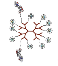 相对于无分子支架,使用分子支架也可以实现某一分子多拷贝偶联并变成更具活性的最终偶联物,潜在地提高检测灵敏度。因此,一个预期的偶联物可包含不同组分直接连接形成的复合物或者由不具有生物活性但为整体性能做贡献的中介分子。