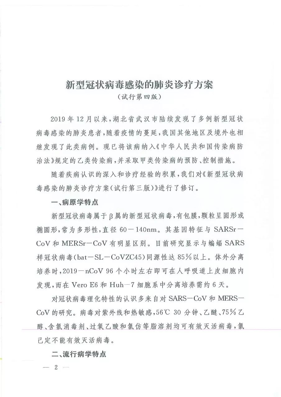 为进一步指导全国科学规范做好新型冠状病毒感染的肺炎病例诊断和医疗救治工作,我们组织专家对诊疗方案进行修订,形成了《新型冠状病毒感染的肺炎诊疗方案(试行第四版)》。现印发给你们,请参照执行。各有关医疗结构要在医疗救治工作中积极发挥中医药作用,加强中西医结合,简历中西医联合会诊制度,促进医疗救治取得良好效果。