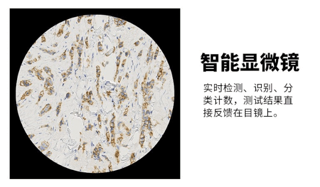 依靠病理医生诊断还面临着一个重要的现实问题:病理医生严重短缺。据统计,中国目前仅有 1.5 万名病理医生,缺口近 10 万,供需极不平衡,而新病理医生的培养又面临着时间周期长,年轻一代学习意愿不强等问题。 智能显微镜优势:节约医生的时间精力,提升读片精准度与一致性 近年来随着机器学习与大数据技术的发展,以计算机视觉为首的 AI 技术已展现出了在病理诊断应用上的巨大潜力。若使用 AI 辅助 IHC 结果判读,可以: