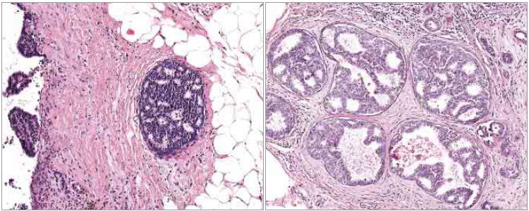 图左是导管非典型增生,图右是原位癌,如果误判,后果严重。 来源:JAMA, 第1109页, 2015年