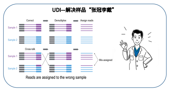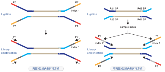 在高通量测序技术日益成熟的今天,相信大家或多或少都对文库制备实验有所了解,而文库制备的目的,就是为了在目标DNA序列两端连接上特异的接头,从而能够在测序平台上机测序。那今天,我们就来扒一扒关于Illumina平台文库接头的那些事儿吧。 ![]() 接头结构 接头作为文库的必要组成部分,包括P5/P7、Index以及R1 SP/R2 SP序列。其中P5/P7序列能够跟测序芯片上的P5/P7序列互补和相同,只有这样才能将待测片段固定在Flowcell上进行桥式PCR扩增;Index又称为barcode,目的是给文库加上特定的标签,用于文库混合测序时区分不同的文库样本;R1 SP/R2 SP是Read1和Read2测序引物结合的区域,在dNTP和DNA聚合酶的作用下能够进行碱基的延伸。下图是接头的一般结构,呈“Y”字型。 ![]() 图1:接头的一般结构 “Y”型接头保证了每条单序列两端均为不同的测序引物,从而可以通过后续的PCR扩增形成两端带有不同核苷酸序列(P5/P7)的文库。 ![]() 图2:文库的一般结构(中间灰色部分为待测序列) 接头如何分类 01 单/双端Index接头 根据Index位置的不同,接头可以分为单端和双端Index接头。单端Index接头只在P7端存在Index序列,双端Index接头在P5和P7两端均存在Index序列。一般而言,Index序列的碱基数为6 nt或8 nt。以8碱基Index序列为例,单端Index组合理论上可以有48种,双端Index组合理论上可以有416种。但是,考虑到测序时Index组合要满足碱基平衡和激光平衡原则,实际可供选择的Index种类为数不多。目前双端Index组合最多高达3840种,这直接影响最终文库混合上机能够混合的样本数。 目前,测序仪的测序能力远大于测试样本数据量,例如Hiseq、Novaseq等,为避免仪器浪费,就需要更多样的文库标签来区分不同的文库样本,因此双端Index接头的应用更为广泛。 ![]() 图3:双端Index结构 注:由于Illumina不同机型双Index PE测序策略不同,i5端Index 2的读取方式也有所不同。如测序平台为Miniseq,Nextseq,Hiseq 3000/4000,Hiseq X等机型时,Index 2序列需要进行反向互补后再输入到sample sheet中。 02 长接头和短接头 根据能否匹配PCR-free文库,接头又可以分为长接头(完整的Y型)和短接头(不完整的Y型接头)。长接头通过TA连接的方式连接到待测DNA片段两端,在文库产量足够的情况下,可不进行PCR扩增直接上机测序;而短接头通过TA连接的方式连接到待测DNA片段两端后,必须使用与短接头互补的Indexing Primers进行PCR扩增成为完整接头后,才能上机测序。造成上述区别的主要原因是长短接头引入Index序列的方式有所不同。 ![]() 图4:长短接头Index序列不同引入方式 注:长接头连接产物扩增时,引物序列只需要与P5/P7互补即可,而短接头连接产物扩增时,引物序列还需要包含有Index。 03 UDI & UMI接头 2017年,Illumina公司推出了“测序洗衣机”型号——NovaSeq 6000,这款仪器的特点在于运用了ExAmp扩增方式和Patterned flow cell样品槽,2天能产出高达6 Tb的数据,为更大规模的全基因组测序带来了希望。新技术的应用虽然大大增加了扩增效率,使得通量更高、成本更低,但同时也加大了游离接头的干扰,导至出现标签跳跃(Index hopping)问题。 ![]() 图5:标签跳跃百分比与加入的接头水平的曲线[1] 为了解决Patterned Flow Cell测序平台(Hiseq系列、Novaseq等)凸显的标签跳跃问题,Illumina提出了“Prepare dual Indexed libraries with unique Indexes”的策略,即在文库的P5和P7端带上独特的标签—UDI(Unique dual Index),通过P5 Index 2和P7 Index 1成组设计,两端Index交叉验证,从而能够有效降低Index错误分配的现象。 ![]() 此外,在极低频突变检测中,避免假阳性是液体活检格外关心的重要一环。应用分子标签技术,能够分辨出检测到的突变是真实的低频突变还是来源于测序错误和PCR扩增错误,从而过滤掉背景噪音,实现低频突变的准确检测。 而分子标签UMI(Unique Molecular Identifiers)通常设计为完全随机的核苷酸链(如NNNNNN)、部分简并核苷酸链(如NNNRNYN)或者固定核苷酸链(当模板分子有限的情况下)。NGS文库构建过程中,在UDI接头结构的基础上引入UMI标签,通过对原始DNA分子片段进行标记,能够验证测序结果在原始DNA序列上的一致性,从而剔除假阳性突变。 ![]() 如上图所示,三个分子被测了5次,其中左侧和右侧均有测序错误,但该错误并没有在每个测序数据中出现,所以在后续合成一个分子的时候,测序错误被修正,只保留了真正的突变。 目前这种新型的UMI接头包含三种元件,即P5 Index、P7 Index以及UMI元件。根据UMI标签引入接头的位置—紧随P7端Index或位于插入片段两端,又分为两种不同的接头类型: ![]() 注1:转座酶文库不是通过TA连接的方式连接接头,其引入Index的方式与非完整接头类似,即转座酶切的过程中引入R1 SP和R2 SP,再经过PCR扩增引入Index和P5/P7序列,最终形成完整的文库。 注2:Small RNA文库亦不是通过TA连接的方式连接接头,而是将Small RNA的3’和5’端分别与通用接头连接,经过逆转录、PCR扩增得到Small RNA文库。 参考文献: [1] https://www.illumina.com/content/dam/illumina-marketing/documents/products/whitepapers/Index-hopping-white-paper-770-2017-004.pdf |