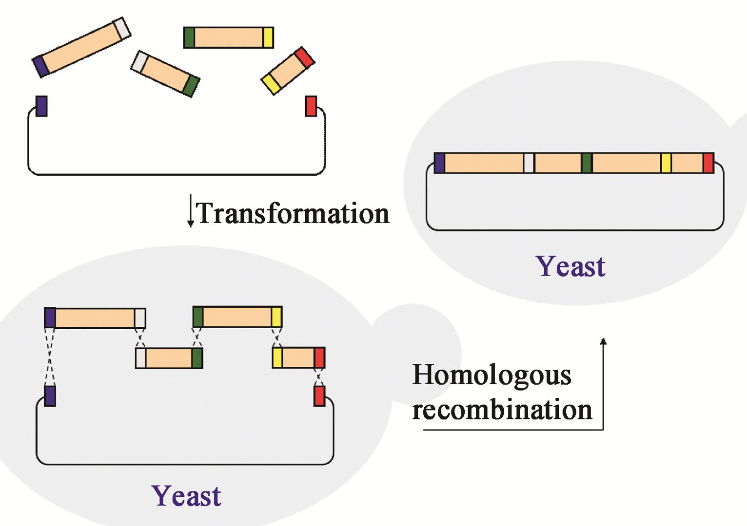 酵母中转化偶联重组DNA 研究者将反义DNA拆解成12个长0.5-3.4 kbp具有重叠末端序列的DNA片段,并引入GFP(绿色荧光蛋白序列),利用酿酒酵母中的同源重组系统,使得反义DNA在酵母菌中重组成完整的基因序列。之后,在体外,用T7 RNA聚合酶将反义DNA转录成为有感染性的病毒RNA。通过电穿孔将RNA导入后,发现正常的VeroE6细胞能够被感染并发出荧光。