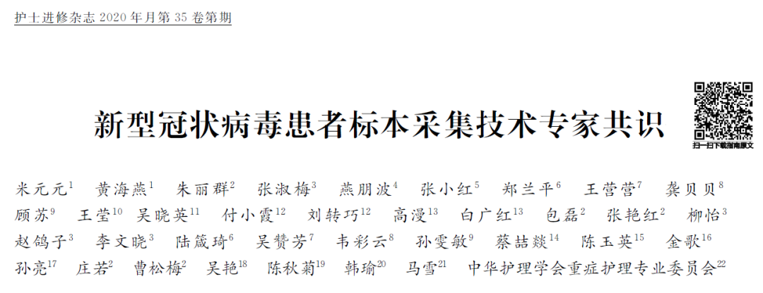 新型冠状病毒患者标本采集技术专家共识