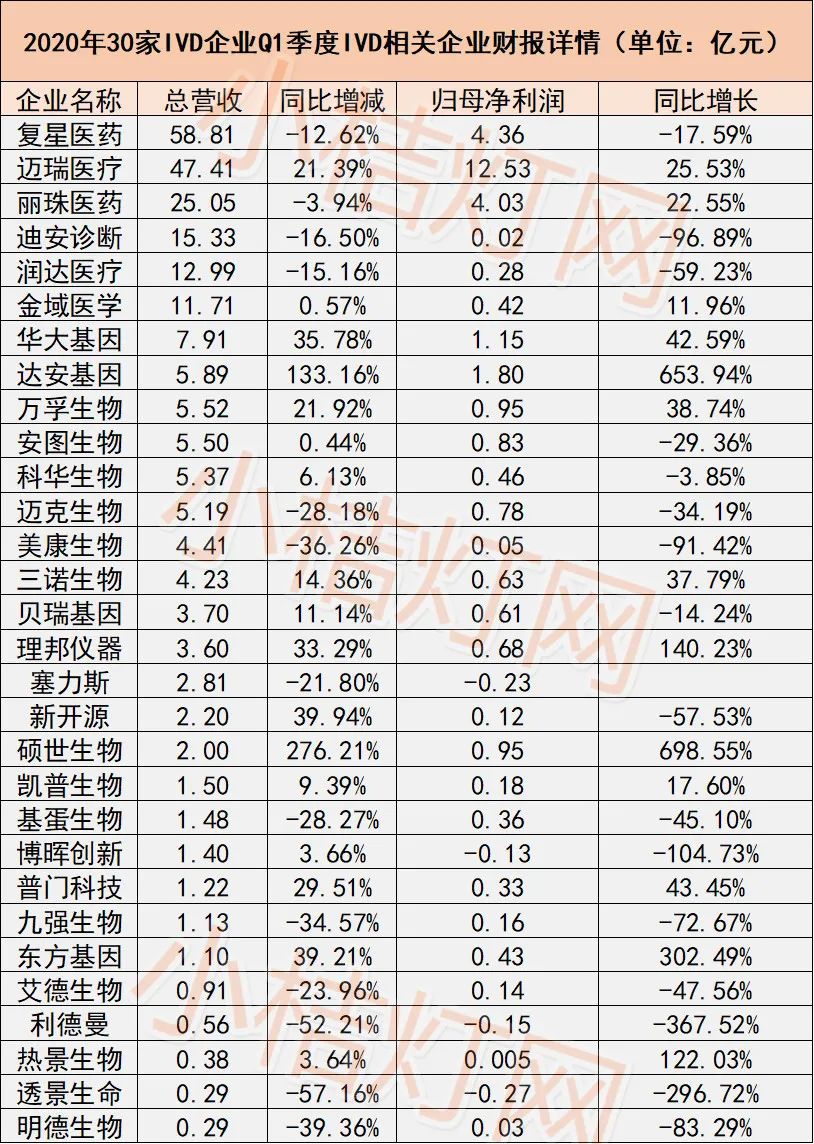 疫情下:IVD企业Q1表现迎来“冰火两重天”!