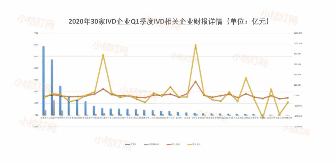 30家 IVD相关企业Q1净利同期增长TOP3: