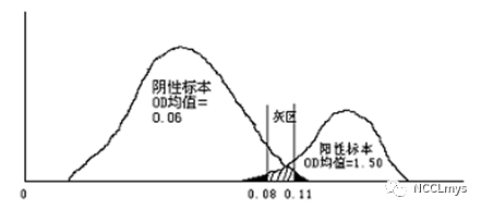 图2. 依据阴性和阳性人群检测值的分布确定阳性判断值