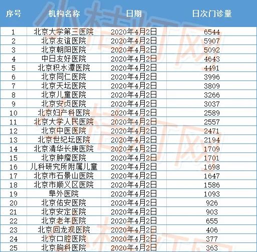 另外,根据采购知情人透露:2020年4月2日,北京市25家医疗机构门诊上报人数从未出现单日次破万,这对于2153万人口的北京市来说可谓是异常惨淡啊。