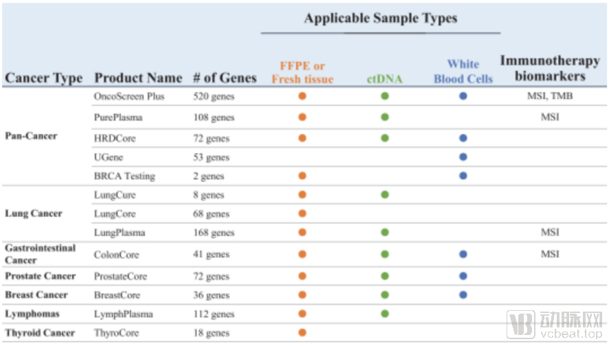 其中最大panel的泛肿瘤检测产品——OncoScreen Plus从2015年的OncoScreen升级而来,可以分析520种与大多数实体瘤相关的基因,同时还包括了TMB(肿瘤突变负荷)和MSI(微卫星不稳定性)指标的检测,以及其他一些生物标志物,为治疗方案的制定提供重要依据。