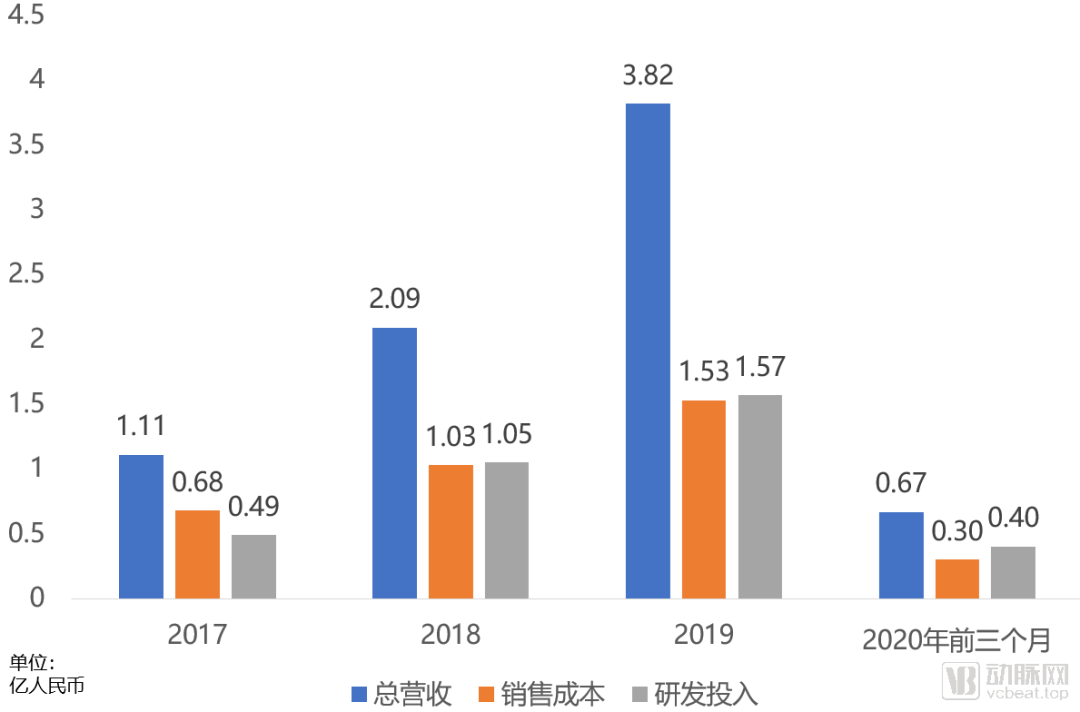 2019年,燃石医学的总营收为人民币3.82亿元,毛利润人民币2.73亿元,毛利率71.5%。而营销费用支出,只有1.53亿元,只占销售额的40%。而与此相对应的,是超过营销成本的人民币1.57亿元的研发开支,占营收的41.1%。数据也展示了燃石医学在研发上的投入同样巨大。