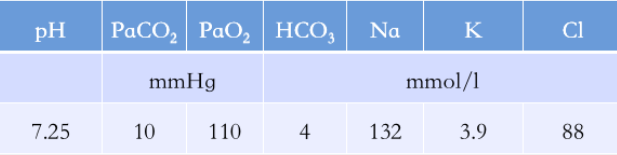 首先,要熟记常见指标的正常值 pH:7.35~7.45; PaCO2:35~45 mmHg; PaO2:80~100 mmHg; HCO3- :22~27 mmol/L; BE:-3~+3 mmol/L; SaO2:95~100% 其次,判断所检测结果是否正确 如果对于一个不存在明显缺氧、休克情况的患者,出现 PaO2 不足 60 mmHg,SaO2 低于 80% 的情况,就要怀疑是不是抽到静脉血了;最简单的验证方法,是让病人带上监护仪的指脉氧看看,如果指脉氧的 SaO2 是 比96% 还高的,那就需要重采复查。 然后,就是结果分析 一、根据 pH 值看酸碱失衡 pH<7.35 表示酸中毒;pH>7.45 表示碱中毒;pH 在 7.35~7.45 表示正常,也可能是代偿状态,也可能是混合性酸碱失衡。 二、判断原发酸碱失衡类型 主要是看 PaCO2(呼吸因素)、HCO3ˉ(代谢因素)与 pH 值的变化方向。谁与 pH 的变化方向相同,谁就是原发因素。 在酸中毒(pH<7.35)情况下,如果 PaCO2 升高,表示为原发性呼酸;如果 HCO3ˉ降低,表示为原发性代酸。 在碱中毒(pH>7.45)情况下,如果 PaCO2 降低,表示为原发性呼碱;如果 HCO3ˉ升高,表示为原发性代碱。 但对于存在混合性酸碱失衡的情况,比如同时存在 PaCO2 升高和 HCO3ˉ降低的酸中毒,或者同时存在 PaCO2 降低和 HCO3ˉ升高的碱中毒,需要根据临床情况判断原发失衡。 如果存在呼吸道梗阻、肺部感染、慢阻肺、呼吸衰竭等因素,则考虑呼吸为原发因素; 如存在低血压、血容量不足、感染、大量利尿剂应用、胃肠减压、肝肾功能不全等,则考虑代谢为原发因素。 三、判断是否存在代偿和混合性酸碱失衡 比较实测值与预计代偿值,如果实测值在预计代偿范围内,说明仅存在单纯型酸碱失衡。如果二者不符,提示存在二重型酸碱失衡。 四、计算 AG 和∆AG AG【阴离子间隙】计算方法: AG = Na+ - (Cl-+HCO3-) ,AG 的正常范围是 8-16 mmol/l 。如果 AG 升高,首先判断一下是否存在高 AG 代谢性酸中毒,然后评价 AG 升高与 [HCO3-] 的关系。 ∆AG = AG-12,潜在 [ HCO3- ]= ∆AG +实测 HCO3-= NA+-Cl--12 如果为非高 AG 代谢性酸中毒, 潜在 [ HCO3- ] 的值应当介于 22 和 26 之间。 如果这一比值在正常值以外, 则存在其他代谢紊乱: [HCO3-] < 22,则并存阴离子间隙正常的 (高氯)代谢性酸中毒。 [HCO3-] > 26,则并存代谢性碱中毒。 (注意:低白蛋白血症患者血浆白蛋白浓度每下降 10 g/L,阴离子间隙「正常值」下降约 2.5 mmol/L 。) 实战演练 这里分享一个病例: 基本情况:男性 32 岁,长期酗酒,腹痛、恶心、呕吐、3 天入院。神清,查体无特殊异常,入院前因腹痛禁食。 血气电解质如下: PH 定酸碱 pH = 7.25 < 7.35,酸中毒 分清原发、代偿 pH = 7.25 酸中毒 PaCO2 = 10 mmHg pH 偏碱 HCO3- = 4 mmol/l pH 偏酸 故原发变化是代谢性酸中毒。 算代偿定单、混 通过代偿公式算出:PaCO2 = 1.5 × 4 + 8 ± 2 = 14 ± 2 患者 PaCO2 为 10 mmHg ,超出预计代偿范围,故患者还存在呼吸性碱中毒。 计算 AG 和△AG AG = 132 – 88 – 4 = 40 该患者为高 AG 性代谢性酸中毒 △AG = 40 – 12 = 28 △ HCO3- = 24- 4 = 20 △AG ≠ △ HCO3- 潜在 [ HCO3- ]= ∆AG +实测 HCO3-= 28+4 = 32 所以该患者还有代谢性碱中毒 结论:乙二醇中毒引起的高AG的代谢性酸中毒,呕吐引起的代谢性碱中毒,并存呼吸性碱中毒,是一个三重的酸碱平衡紊乱。 |