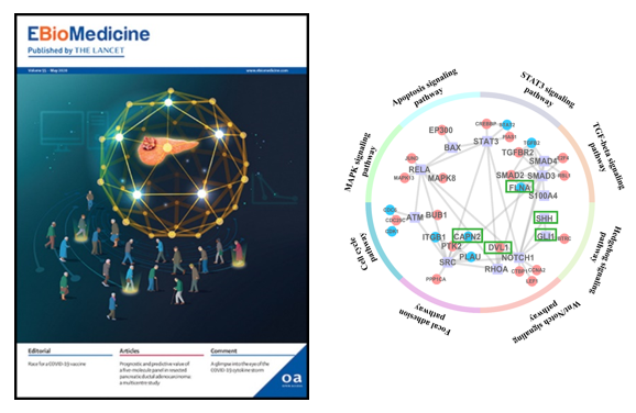 胰腺癌起病隐匿、恶性程度极高,俗称“癌中之王”。据国家癌症中心2018年统计,胰腺癌在我国所有肿瘤中五年生存率最低,仅为7.2%。术后化疗的疗效是影响胰腺癌患者预后的重要因素。发现胰腺癌术后精准化疗标志物,精准筛选化疗受益患者人群,是有可能提高胰腺癌生存率的重要方向。然而,由于胰腺癌机制复杂,目前临床上尚缺乏指导胰腺癌术后化疗精准用药的生物标志物,尤其是适合中国人群的标志物。随着生物医学研究进入人工智能、大数据时代,能否通过系统、全局的计算预测,发现胰腺癌高精度生物标志物,成为一个颇具挑战的前沿问题。清华大学自动化系、信息国家研究中心长聘教授李梢带领课题组长期致力于从“生物网络”这一系统性的角度来研究肿瘤发生发展机理及其生物标志,阐释中西医药的网络药理机制,并在胃癌智能预警与极早期诊疗上取得突破性进展,成果入选2019年度中国生物信息学十大应用、中华中医药学会十大学术热点。近期,该课题组与北京协和医院院长赵玉沛院士团队紧密合作,发现了首个经中国人群多中心临床验证的胰腺癌术后精准化疗标志物,赵玉沛团队、李梢团队发明的该标志物已获得中国发明专利授权(ZL201611038981.4)。2020年5月,该标志物在国际著名临床杂志《柳叶刀》(The Lancet)旗下子刊、SCI医学一区刊物《EBioMedicine》作为封面论文发表。清华大学博士生张鹏为论文共同第一作者、李梢为共同通讯作者,协和医院郭俊超、周立、由磊为共同一作,郭俊超、张太平为共同通讯作者。 图1. 胰腺癌分子网络与术后精准化疗标志物。左图为封面论文图(由李梢教授和张鹏设计)。即利用智能计算与多中心临床试验相结合,发现一组由五个分子构成的生物标志物,可精准识别胰腺癌术后预后高风险人群以及化疗获益人群;右图表示通过智能计算所预测的生物标志物构成的分子网络及其相关信号通路。该标志物的发现是智能计算与多中心临床试验相结合的一个结晶,首先在计算方法学上具有重要突破意义。李梢课题组利用自主研制的致病基因关系推断算法CIPHER对胰腺癌致病基因进行全基因组预测,进而整合胰腺癌多层次组学数据和先验知识,构建出胰腺癌恶性进展相关的分子网络,并成功预测出一组位于TGFβ、Hedgehog、Wnt等通路的、与胰腺癌预后密切相关的生物标志物组合。其中有三个分子(FLNA,DVL1,CAPN2)是首次发现与胰腺癌预后及化疗相关。进而,北京协和医院、上海仁济医院、哈尔滨医科大学第一附院对标志物进行了多中心、606例临床样本的验证,发现该标志物具有以下四方面优点:1. 可靠性强,是首个经中国多中心胰腺癌人群验证的胰腺癌术后精准化疗标志物;2. 预测精度高,性能显著优于现有临床肿瘤指标CA19-9,并能显著提升临床传统病理指标的预后性能 (p < 0.001);3. 能精准筛选出化疗受益人群,该人群接受健择(盐酸吉西他滨)为主的化疗后,中位生存期显著增加了近5个月(p < 0.01);4.能精准识别出预后极差人群,该人群总体生存风险大幅增加了一倍以上。图2. 生物标志物的多中心临床验证。A图为生物标志物在三个独立的临床中心样本中评估与预后的关联;B图为生物标志物与临床肿瘤指标(CA19-9)的预测性能比较;C图为利用生物标志物识别所区分的化疗获益和非获益人群的预后分析。该标志物研究得到了863项目、国家自然科学基金重点项目等支持。目前正在进行试剂盒研制、临床前瞻队列研究,有望为实现胰腺癌术后精准诊疗、提升患者术后生存率带来新的曙光。该成果也凸显了人工智能计算在发现肿瘤新标志物方面的优势,并为胰腺癌精准化疗标志物的网络药理学研究提供了重要示范。https://www.thelancet.com/journals/ebiom/article/PIIS2352-3964(20)30142-0/fulltext |