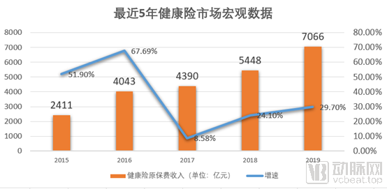 受益于政策和需求的爆发,商业健康险进入了一个高速发展的车道,最近5年市场规模的年复合增长率超过了30%,按照增速预计健康险2020年的市场规模将逼近万亿级别。
