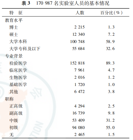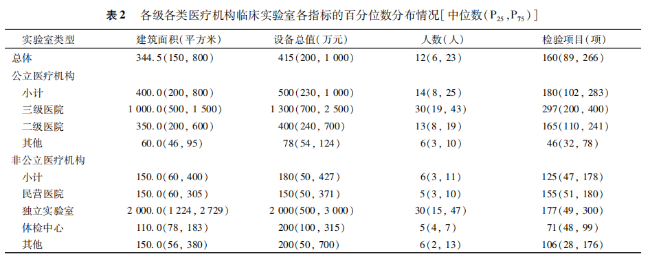 作者:康凤凤 郦卫星 王薇 陈兵权 王治国 由国家卫生健康委临床检验中心组织全国31个省临床检验中心同步开展调查。各中心将各自室间质评用户库中的实验室纳入调查对象,除外血库、疾病控制和预防中心及厂家实验室等。于2019年3月15日通过C1inet-EQA统一向14055家实验室下发调查问卷。另外,抽取浙江省部分医疗机构检验科进行实地走访,以验证调查结果的可靠性。 共有9966家(70.9%)的医疗机构回报了结果。参加单位大部分来自公立医疗机构,其中二级医院占比最高,且以综合性医院为主。参加调查单位的其他特征如表1所示。 一、临床实验室建筑面积情况 表2显示了各级各类医疗机构临床实验室4个指标的百分位数分布情况。实验室建筑面积总体中位数为344.5m2,公立医疗机构总体中位数是非公立医疗机构的两倍多,但第三方独立实验室面积是所有实验室类型中最大的。各级各类医疗机构实验室面积相差甚大,公立医疗机构中,三级医院检验科实验室面积远大于其他医院。非公立医疗机构中,除第三方独立实验室外,其余类型异不大。此外,同类型医疗机构实验室间的面积差异也较大,四分位间距最大差异可达6.8倍。 (可点击图片放大) 二、临床实验室仪器设备情况 实验室设备总值中位数为415万元,其分布与实验室面积类似。公立医疗机构实验室设备总值中位数是非公立医疗机构实验室的2.8倍。各级各类医疗机构实验室设备总值差异较大,第三方独立实验室仪器设备总值最高,民营医院检验科最低。 三、临床实验室人力资源情况 实验室人员总体中位数为12人,公立医疗机构实验室人员中位数是非公立医疗机构的2.3倍。不同等级类型医疗机构中,第三方独立实验室人员数中位值与三级医院相当,远高于其他等级医疗机构的实验室。9966家实验室负责人中,男女性别比例基本持平;年龄平均为47岁,以40~50岁组为主(45.5%),>60岁组占4.3%;61.2%的实验室负责人学历为大学本科,硕士和博士研究生学历者分别占5.4%和3.2%;以副高级职称(34.2%)和中级职称(38.5%)为主。表3显示了170987名实验室人员的教育水平、专业及职称分布情况。近90%的实验室人员来自检验医学专业,职称以初级占多数。 四、临床实验室检验项目情况 除去外送项目,参加调查的实验室开展检验项目数中位数为160项。公立医疗机构和非公立医疗机构开展检验项目数差异较大,其中,三级医院实验室开展检验项目数最多,其次是独立实验室。开展的检验项目以自动化检测为主(79.0%),手工项目占21.0%。不同学科检验项目的累计检测数及百分比分布见表4。 五、总结 临床实验室服务对于患者的诊疗和保健至关重要。影响检测结果准确性的主要因素可归纳为4M1E,即人(men)、机器(machine)、材料(materia1)、方法(method)和环境(environment)。本研究主要就实验室建筑面积、仪器设备、人力资源和检验项目4个指标,分析我国临床实验室建设的基本情况,并发现了一些值得关注的现象。 (1)基层医疗机构检验科建设不足,亟待加强 基层医疗机构的检验科在基层诊疗和疾病预防方面发挥着巨大的作用。宽敞的实验室空间和合理的设备配置,是开展检验工作和保障安全的先决条件。从表2可以看出,基层医疗机构在实验室面积、仪器设备等方面与其他公立医院检验科差异巨大,且不同基层医疗机构检验科之间差异也较大。目前,我国三级综合医院实验室面积不应<300m2,这已达成共识。但对其他各级各类临床实验室建在有限的人力资源条件下,各级医疗卫生监管机构应重视基层检验人员的培训工作,尤其是质量安全理念培训和技术支持。随着县域医共体工作的推进,医共体牵头单位应重视内部的同质化管理,积极组织培训,定期考核并建立奖励机制,以改善检验人员的知识结构和专业素质。 (2)民营医院检验科发展不平衡,应给予适当的政策扶持 随着医药卫生体制改革的深入和鼓励社会资本举办医院政策的出台,我国民营医院迅速发展,有效缓解了医疗资源紧缺的现状。民营医院的规模与各地民营经济的活跃程度相关。以浙江省为例,多数筑面积,尚无明确标准。实地走访部分浙江省基层医疗机构发现,一些新建的社区卫生服务中心相对分配给检验科的面积较大,说明基层检验在基层诊疗中的作用越来越受重视。 另外,实验室应配备提供服务所需的所有设备,包括原始标本采集、处理、检测与储存等。但调研发现,很多基层检验科未见离心机、显微镜等基本检验设备,或者常年失修,忽视了保障检验结果质量的因素。基层检验科的仪器设备并不在于多,也不必一味追求高精端,而应与医院发展规划相适应。如一些基层社区服务中心承担区域内农民体检工作等,可配备血细胞分析仪、尿液分析仪、生化分析仪等。检验科主任应规划5年、10年发展计划,购置相应的必备仪器和设备,以满足临床各科室和患者的需求。 基层医院检验科人才下沉仍不足,检验科通常只有1~2人,学历多较低,甚至没有检验医学背景。民营医院未评级,参照二级医院的标准运营。本次调查发现,民营医院检验科的面积、设备和人员数与公立二级医院有较大差距,但其开展的检验项目数并不少。部分民营医院过于重视经济效益,力求获得最大的成本收益率。尤其是一些特殊检验项目对场地、设备、人员资质和质量控制等有特定的要求,民营医院检验科在不具备相关条件的情况下开