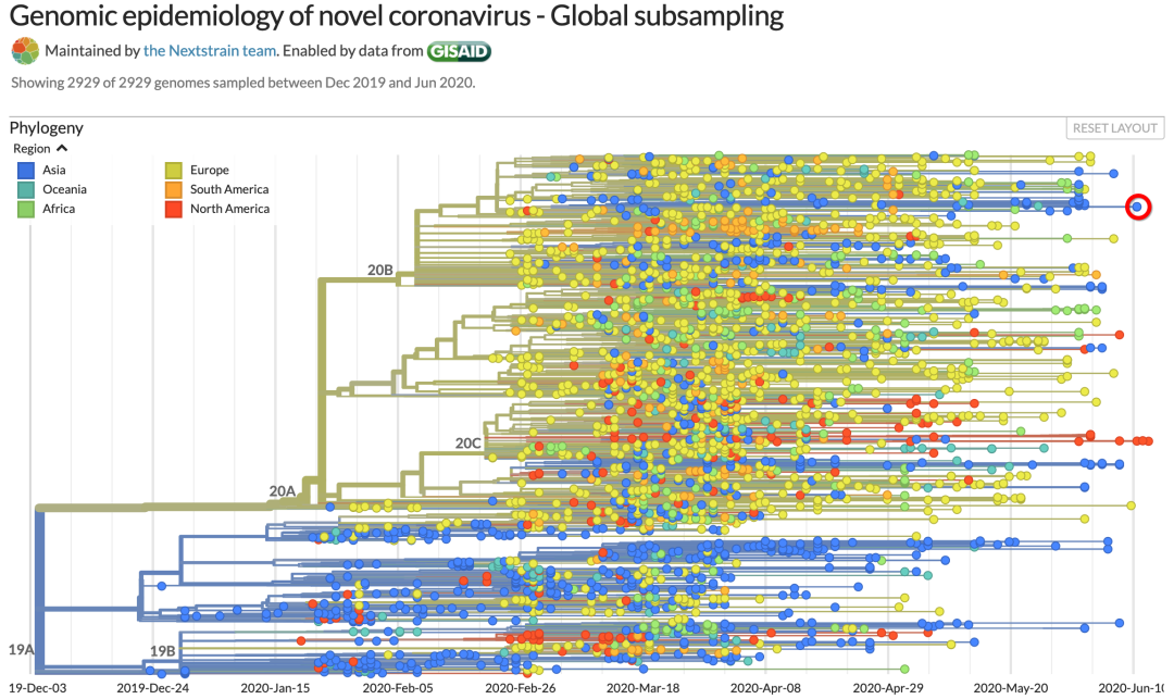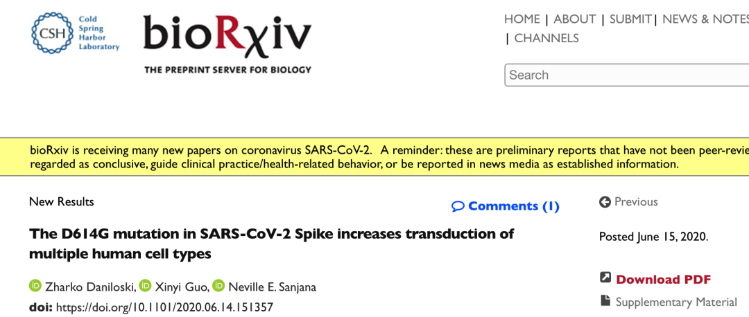 导语:新发地溯源迷雾重重,漏网之鱼不可避免,全国各地都有可能再次拉起警报。近期北京疫情因“新发地”相关多个聚集病例事件,出现疫情“小高峰”,受到全国关注。一方面是由于“新发地”在疫情爆发前10天,有超过百万人去过“新发地”,这些人群中,被感染的人员可能带来非常大的不确定风险。另外,不管是“物传人”还是“人传人”问题还尚不清楚,海鲜市场与百事厂区出现多人聚集性病例事件,引发公众对海鲜等冷冻食品、可乐、薯片等安全性的担忧。北京市卫生健康委22日通报,21日0时至24时,北京市新增报告本地新冠肺炎确诊病例9例、疑似病例2例、无症状感染者5例,6月11日以来,北京市累计报告本地新冠肺炎确诊病例236例,在院236例,尚在观察的无症状感染者22例。并有天津、河北、浙江、辽宁、四川多地发现超过20例的北京关联病例,相关传播溯源工作难度上升。新发地与华南海鲜市场、中央公园面积比较,reuters.中国疾控中心病毒病所专家先后在6月14日和15日、17日,3次进入新发地农产品批发市场,采集了数百份样本,发现有不少阳性样本,这些阳性环境样本可以帮助研究者还原“案发现场”,锁定传染范围甚至传染源。专家倾向认为,“人传人”与“物传人”都可能发生,是物品或人将北京之外的新冠病毒带入了“新发地”。“新型冠状病毒国家科技资源服务系统”http://nmdc.cn/nCoV6月18日晚间,中国疾控中心已通过“新型冠状病毒国家科技资源服务系统”正式发布2020年6月北京新发地新冠疫情及病毒基因组序列数据。主要包括北京市确诊病例基因组序列数据(NMDC60013902-01、NMDC60013903-02)以及环境样本基因组序列数据(NMDC60013903-03),这3个样本均采集于2020年6月11日,为近期北京爆发的病毒样本。同时中国疾控中心也向世界卫生组织及全球共享流感数据倡议组织(GISAID)提交了新冠疫情及病毒基因组序列数据,以全球共享数据。nextstrain网站展示北京样本基因组序列数据位置,https://nextstrain.org/ncov 比对此前数据发现,最近发布的北京爆发3组序列病毒样本均存在D614G突变,并落在同一个进化簇中,该进化簇中多为欧洲病例样本,与前期采样的3个输入型的病毒的基因序列很不一样,在全球冠状病毒的进化架构中,和这3个北京的新冠病毒序列最接近的为来自中国台湾、希腊和葡萄牙的新近发布的新冠序列。bioRxiv preprint doi: https://doi.org/10.1101/2020.06.14.151357D614G流行变异情况,The D614G mutation of SARS-CoV-2 spike protein enhances viral infectivity and decreases neutralization sensitivity to individual convalescent sera,doi: https://doi.org/10.1101/2020.06.20.161323具有D614G突变的毒株于2月初开始在欧洲传播,到5月成为世界范围内的主流毒株,在欧洲和北美占近70%的测序样本。在印度,巴西、伊朗等地均有发现。The D614G mutation in the SARS-CoV-2 spike protein reduces S1 shedding and increases infectivity,bioRxiv preprint doi: https://doi.org/10.1101/2020.06.12.148726美国斯克里普斯研究所(Scripps Research)病毒学家Hyeryun Choe团队在预印本网站bioRxiv文章称发表最新研究表明,在整个欧洲和美国流行的 SARS-CoV-2变异体中的微小基因突变,有可能增加冠状病毒上刺突蛋白的数量,这将大大提高了该病毒感染力,其感染人细胞的能力提高9-10倍。D614G突变与感染力增强有关,bioRxiv preprint doi: https://doi.org/10.1101/2020.06.12.148726Hyeryun Choe团队比较了S蛋白与天冬氨酸(SD614)和甘氨酸(SG614)在残基614处的功能特性。他们观察到,用SG614伪逆转录病毒感染ACE2表达细胞的效率明显高于用SD614的逆转录病毒。