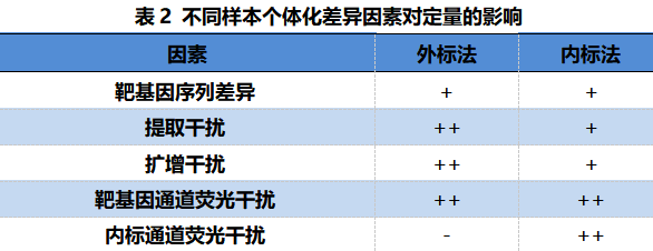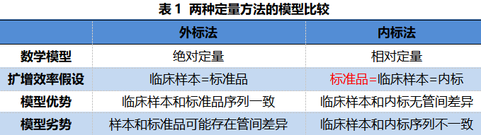 外标法:即绝对定量,是使用一系列稀释的已知浓度标准品与临床标本同时进行测定,求出标准品的Ct值与起始模板浓度之间的线性比例关系。通过待测标本的Ct值就可以在线性关系中求出其原始的模板浓度。 内标法:是指将标准内标与待测样本在同一管内扩增,然后通过内标的量来推导待测模板的量,是一种相对定量的数学模型。该模型是假定了临床样本和内标有一致的扩增效率。[1] 内标法需要检测标准品吗? 需要。要实现对样本的定量检测,必然需要使用到已知浓度的标准品,就像天平称量离不开砝码一样。内标法就像是用了一个苹果充当砝码,但这个苹果最初肯定得使用砝码称量一遍。 与外标法直接比较待测样本和标准品不一样,内标法使用靶基因Ct值和内标Ct值的差值进行运算。多一个维度的参数,使得该方法更为准确,但也使得运算更为复杂。该差值与靶基因起始模板量之间呈二次函数关系,所以需要测定更多的标准品(6个以上)才能保证这个二次函数的准确性。 因此,内标法不但需要检测标准品,而且还需要检测更多的标准品。 如何不带标准品使用内标法? 不带标准品的内标法=调用标准曲线的外标法;由于成本的考虑,使用内标法的厂家大都未使用标准品。所以在检测过程中,这些厂家便采用调取出厂标准曲线函数的方式。部分实验室在使用外标法时也会用到这个方法,但这种方式往往是极不被推荐的。因为如果不能排除不同仪器、不同批试剂、不同实验环境(温度湿度)、不同实验操作等因素造成的影响,那么结果的准确性就很难得到保证。 因而,无论是内标法还是外标法,如希望不带标准品进行检测,应尽量避免上述风险,所以只能选择全封闭系统,并对使用环境做较为严苛的要求。 内标法可以彻底解决样本间差异对定量结果的影响么? 不能。不同的标本存在个体化差异,除靶序列的变异外,对PCR定量结果存在影响的还有多种因素。面对不同的干扰因素,两种方法各有优劣。 注:“-”没有影响;“+”有一定影响;“++”有较大影响; 小结 内标法和外标法作为两种不同的PCR定量方法模型,有各自的特点,并无本质的优劣势之分。作为一项检测技术,以提供科学、客观、准确的检测结果为目的,为临床医生诊断和治疗提供参考价值,充分体现检测的临床意义才是最重要的。 注:图片源于网络 侵删 |