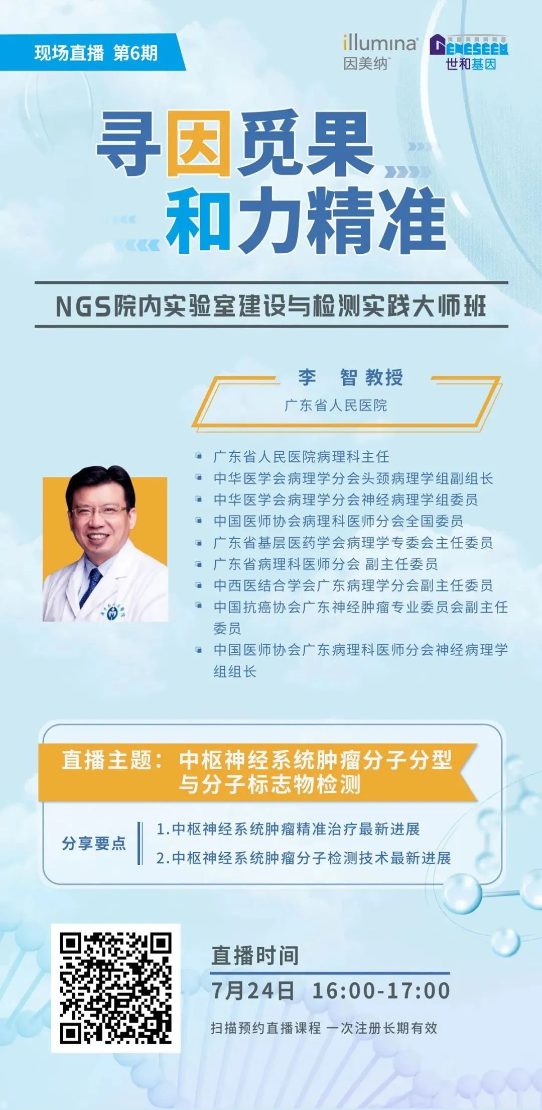 本次课程我们非常荣幸的邀请到广东省人民医院李智教授,李教授将为大家系统介绍中枢神经系统肿瘤分子分型与分子标志物检测,分享中枢神经系统肿瘤精准诊断与用药的最新进展。机会难得,欢迎大家聆听。 | | | |