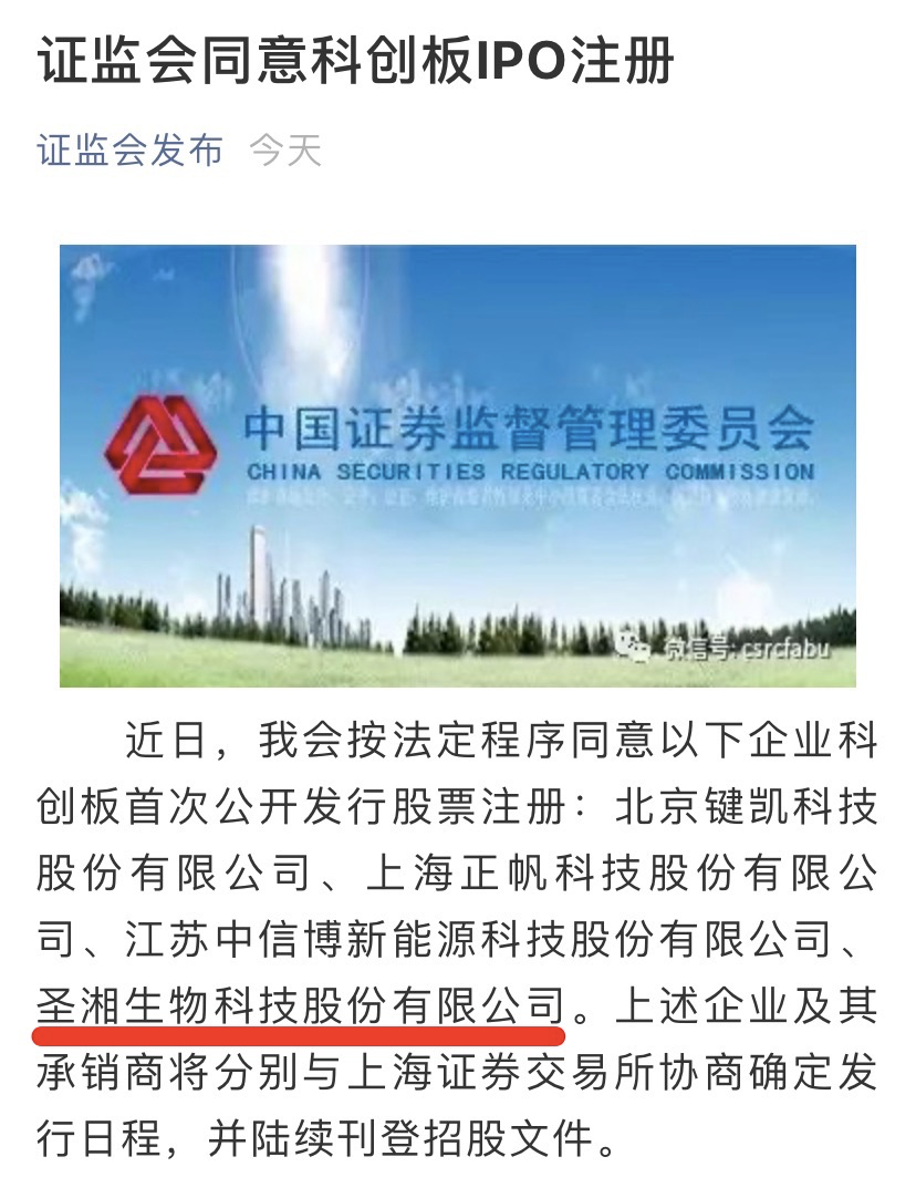 7月28日晚,证监会发布最新消息:按照法定程序同意圣湘生物科技股份有限公司(以下简称“圣湘生物”)科创板首次公开发行股票注册。企业及其承销商将分别与上海证券交易所协商确定发行日程,并陆续刊登招股文件。 7月21日,证监会同意安必平科创板IPO注册,短短几天再次迎来圣湘生物IPO注册成功的喜讯,意味着圣湘生物成为继康方生物、安必平后,高特佳投资2020年第三个IPO项目,也成为沪深两市“抗疫”第一股。 “证监会发布”官微信息 2017年8月,圣湘生物获得高特佳投资。对于此次圣湘生物科创板IPO注册成功,高特佳投资执行合伙人于建林认为:“圣湘生物高度专注于技术积累,在分子诊断领域具有明显的先发优势,除了已经上市的产品外,圣湘生物拥有丰富的在研项目储备,包括感染性疾病领域及肿瘤领域9个产品。在此次疫情中,圣湘生物也是国内首批获得新冠病毒核酸检测试剂盒注册证的企业之一,表现尤为突出。” 于建林表示:“登陆资本市场后,圣湘生物发行募集的资金将全部用于现有主营业务,进一步提升核心竞争力,促进公司全面与国际接轨,成为全球领先的体外诊断企业。 国内新冠病毒检测产品 最早获批上市的6家企业之一 在2020年新冠肺炎疫情防控工作中,圣湘生物在极短的时间内研发出精准、快速、简便、高通量的新型冠状病毒核酸检测试剂盒,并通过国家药品监督管理局应急审批快速取得注册证书,系国内新型冠状病毒检测产品最早获批上市的6家企业之一。 在强大的生产、营销及服务网络基础上,圣湘生物产品迅速供往湖北、湖南、北京、上海等30多个省市自治区疫情防控一线,新冠检测服务已助力500余家企事业单位复工复产。累计向国内外捐赠了价值超过3000万元的疫情防控应急物资,其中支援湖北物资近2000万元,有效助力湖北大幅提升疫情核酸检测服务能力。 同时,圣湘生物也为全球防控新冠肺炎疫情贡献着中国力量和智慧:3月3日,圣湘生物新型冠状病毒核酸检测试剂通过欧盟CE认证;5月5日,获得美国FDA EUA(紧急使用授权);5月11日,获得巴西卫生监督管理局(ANVISA)注册证书。目前,产品已供往全球100多个国家和地区,助力疫情早发现、早报告、早隔离、早治疗。 新冠肺炎疫情的突发,对圣湘生物业务发展产生了较为深远的影响。 第一方面,公司迅速研发出精准、快速、简便、高通量的新型冠状病毒核酸检测试剂盒并完成注册工作,充分检验了公司的研发团队和技术实力;同时面对此次疫情,公司研发、生产、销售各条线均加班加点,保障检测试剂和仪器的供应,全力为防疫一线提供产品及技术支持,体现了公司及全体员工的社会担当。 第二方面,经过此次疫情,核酸分子诊断对相关疾病的诊疗作用凸显,也让众多医务工作者及民众对核酸检测有了更多的了解,从而有利于推动分子诊断在肿瘤筛查、慢病管理、个性化用药等领域的应用,市场空间有望快速增长。 第三方面,在对疑似病例、密切接触者进行大规模筛查中,由于公司产品和仪器组成的“圣湘方案”具有检测效率高、灵敏度高等突出特点,得到了全国众多医疗机构的认可,公司的品牌影响力进一步扩大,同时公司的全自动核酸提取仪等自动化仪器的装机量和医疗终端客户数量增长较多,为公司未来各类产品市场占有率及整体营收的大幅提升奠定了基础。 2020上半年业绩爆发性增长 预计净利润同比增长88倍 业绩数据显示,圣湘生物2018年,公司实现年营业收入3.03亿元,净利润676.21万元。2019年,公司盈利急速扩张,当年营业收入3.65亿元,同比(较上年同期)增长20.41%;净利润则达到3947.85万元,同比增幅高达483.82%。 而得益于快速研发新冠检测试剂产品,圣湘生物2020年上半年的业绩呈现爆发性增长。圣湘生物发布的公告显示,预计2020年上半年公司可实现营业收入20.48亿元,同比增长1127.94%,实现扣非净利润11.88亿元,同比增长8794.72%。 圣湘生物拥有一系列重点产品,包括国内第一个上市的国产高敏肝炎定量诊断产品,检测灵敏度远高于当时国产同类产品;基于一步法技术开发的乙肝定量检测产品、宫颈癌HPV检测等一系列产品,能够在30分钟内完成96个样本处理,2小时内能够实现结果报告;核酸血液筛查检测产品,检测灵敏度、单批检测效率、检测基因型覆盖率等性能均达到国际领先水平,且弥补了行业很多产品不能检测HIV-2型的缺陷,避免漏检,更好保障我国血液安全等。 除了这次新冠肺炎疫情的防控,在此前的多次突发疫情防控工作中,圣湘生物也有参与,先后开发了冠状病毒(SARS、中东呼吸综合征等)、非洲猪瘟病毒、埃博拉病毒、寨卡病毒、禽流感病毒、登革热病毒等重大疫情相关的核酸检测产品,助力疑似病例特别是隐性病例得到快速分流确诊防止交叉感染,指导疾病治疗,助力疫情防控。 关于圣湘生物 圣湘生物是以自主创新基因技术为核心,集诊断试剂、仪器、第三方医学检验服务为一体的体外诊断整体解决方案提供商。公司致力于成为基因科技普惠者,服务国家精准医疗体系和分级诊疗体系建设,是国家基因检测技术应用示范中心、感染性疾病及肿瘤基因诊断技术国家地方联合工程研究中心、国家级博士后科研工作站单位、国家知识产权示范企业。 公司研发了传染病防控、癌症防控、妇幼健康、血液筛查、慢病管理、突发疫情防控等一系列性能赶超国内外先进水平的产品300余种,