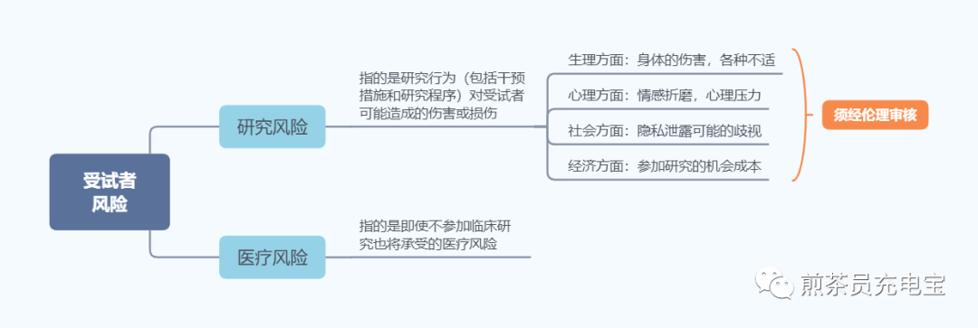 关于受试者隐私保护,可参照《药物临床试验 受试者隐私保护·广东共识(2020 年版)》 另外,为了获得研究结果而采取的一些研究设计和检查步骤,同样可能会给受试者带来风险。比如受试者分到空白组或安慰剂组而无法获得更有效的治疗;为了研究而进行的放射性或介入性检查等。 1.3 根据风险程度可分为最小风险和大于最小风险两种。