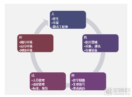 数据库质量管理体系是如何建立的? 数据的管理水平在一定程度上决定着数据库的“质量”。据悉,为建设一个高质量的糖网AI标准数据库,建设团队开创性地引入了ISO9001质量管理理论,按照体系中人、机、料、法、环的要求对数据的收集进行质量控制(见图1 质量管理理论用于AI数据收集的质控)。 据参与数据库质量管理体系设计和建设的上海博方负责人冯庆宇介绍,由于数据库建设包括数据采集、预处理、标注及构建等诸多环节,所以在整个体系建设过程中,对数据的质量管理一一对应ISO9001质量管理体系中人、机、料、法、环的要求,将医疗环节中的要素以及管理要求予以明确,其中:人——实施者、相关参与人员及相应的资质,如医生、专家、算法工程师及资质要求;机——实施的设备,如具体的医疗器械、采集通讯设备、存储设备;料——图像数据,如医学图像、生理信号、患者信息;法——法规标准及操作规程,如临床指南、人员管理SOP、人员操作及设备操作SOP;环——环境要求,如阅片环境、计算机运行环境、网络环境。