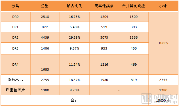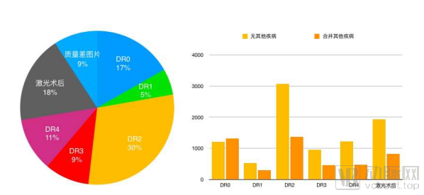 “在建库时,我们曾详细考虑过糖网数据库的数据来源,希望能够让数据库的病历构成与我们世界中的实际情况高度贴合。这意味着这个数据库既要包含各种时期的糖网病变数据,又要包含存在多种眼部疾病的数据,当然,这里面也得有无病症患者的数据。从最后的结果来看,31%的图片包含其他合并病变,这与真实世界的情况高度相符。”