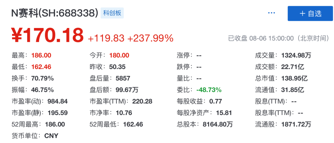 8月6日,北京赛科希德科技股份有限公司(以下简称赛科希德)在上交所科创板挂牌上市,发行价格为50.35元/股。